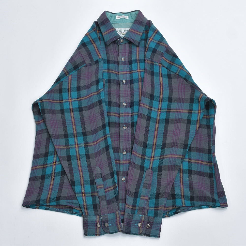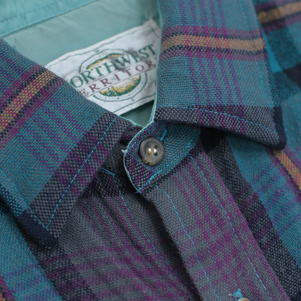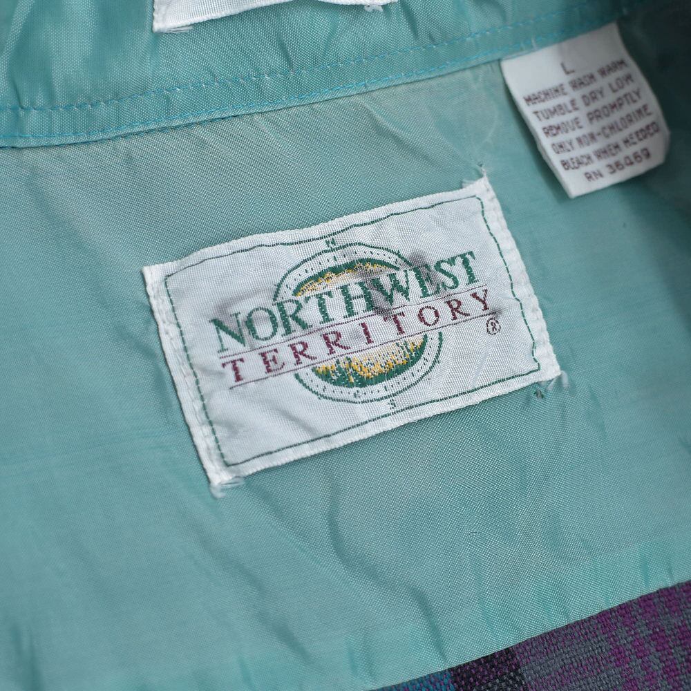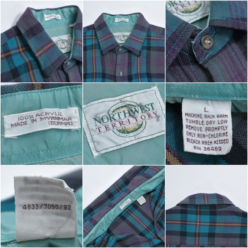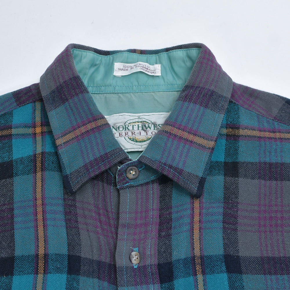 90s NORTHWEST TERRITORY ノースウエスト・テリトリー チェック柄 アクリルウールシャツ ブルーグリーン 格子柄 総柄 ヴィンテージ ビンテージ USA アメリカ古着 メンズLサイズ