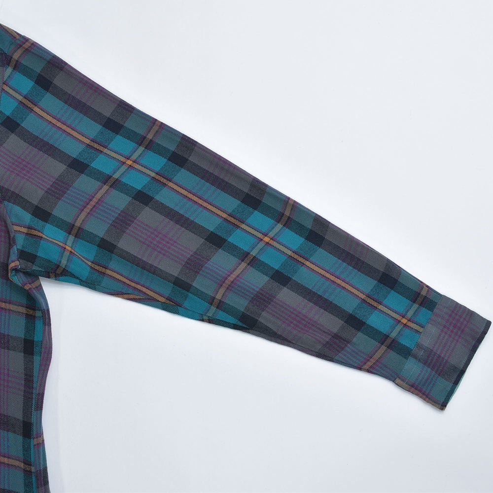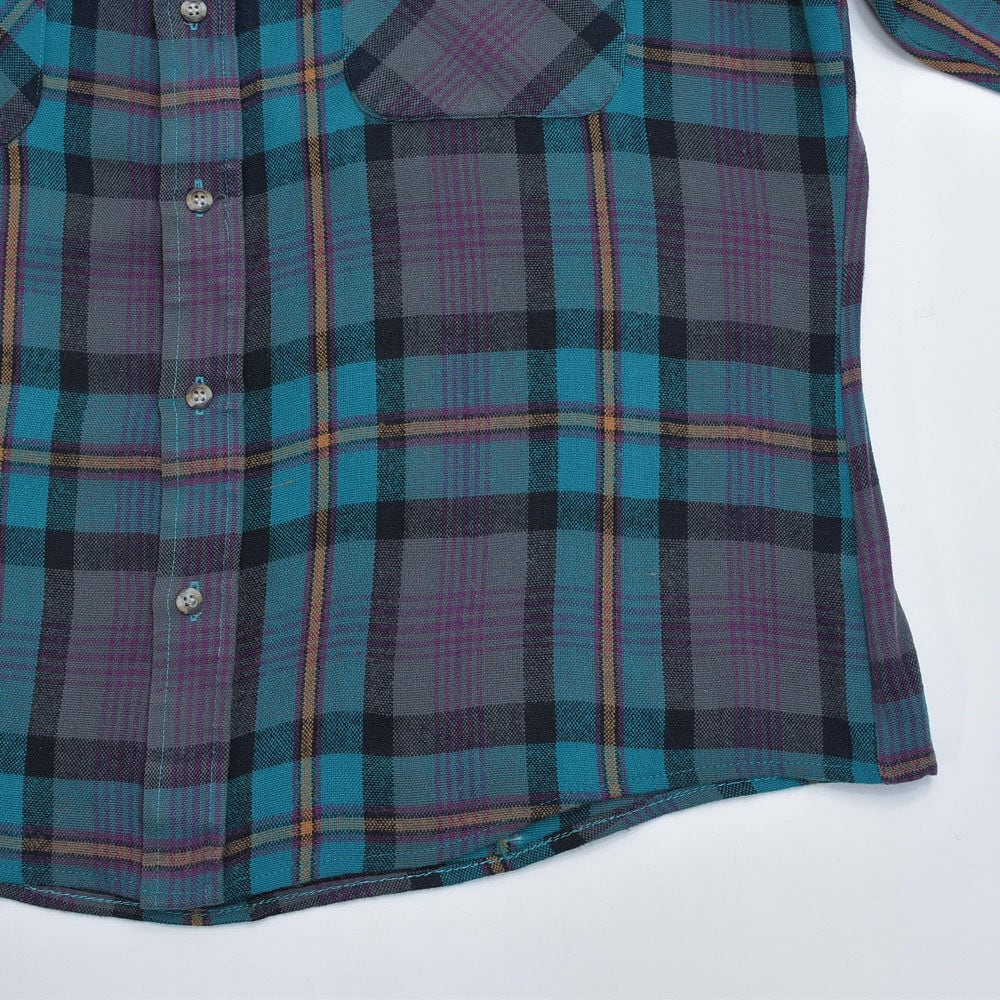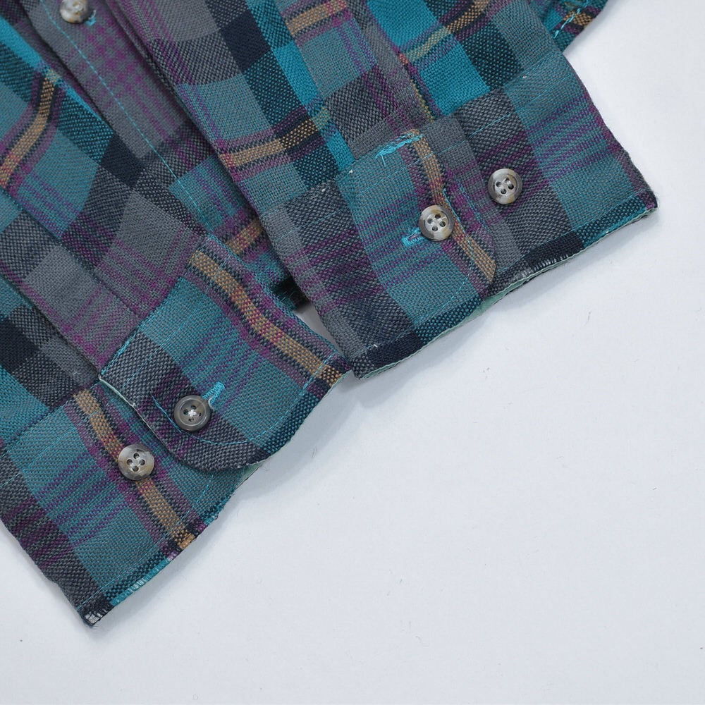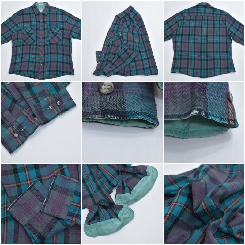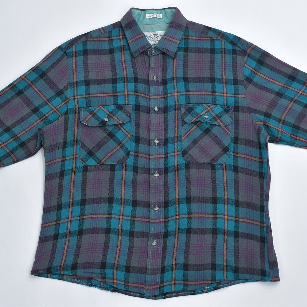 90s NORTHWEST TERRITORY ノースウエスト・テリトリー チェック柄 アクリルウールシャツ ブルーグリーン 格子柄 総柄 ヴィンテージ ビンテージ USA アメリカ古着 メンズLサイズ