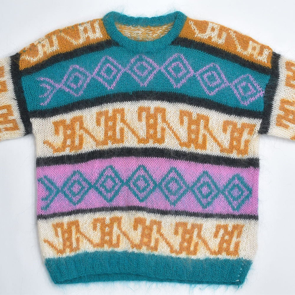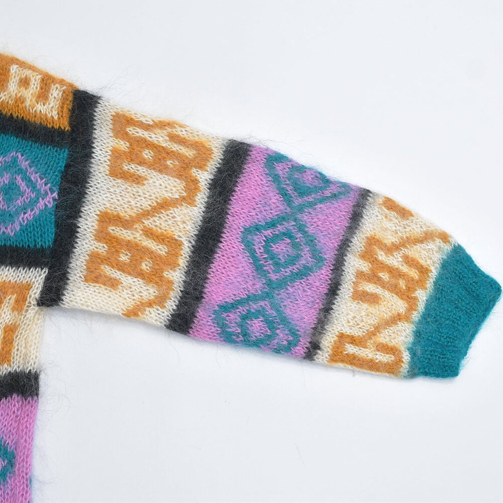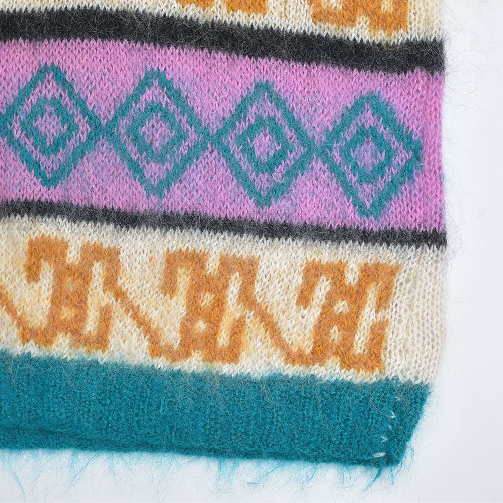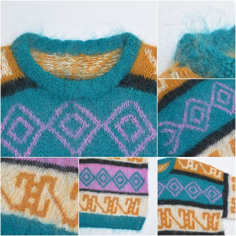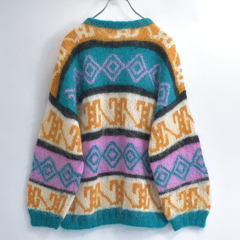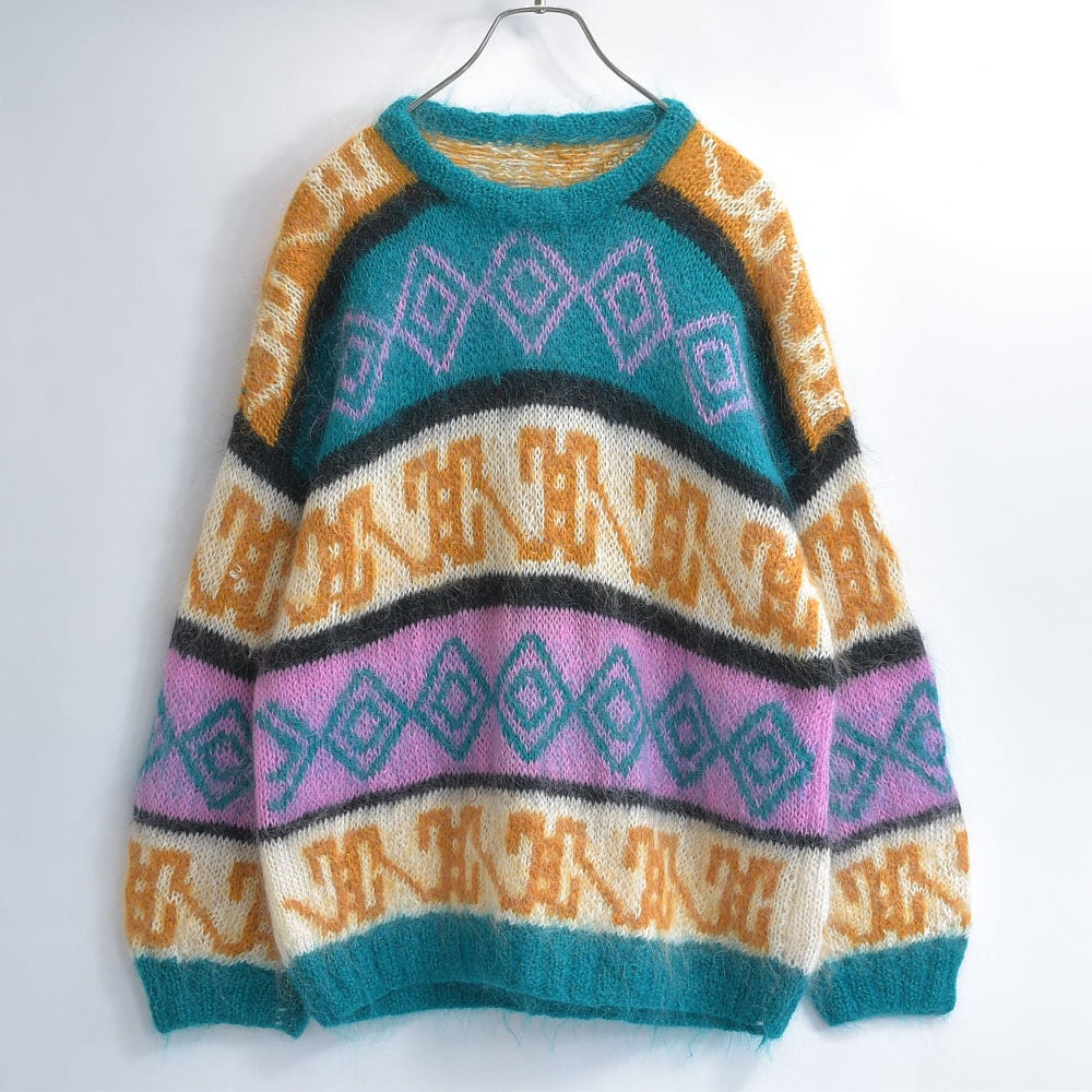 Mohair Mix モヘア ミックス ネイティブ柄 プルオーバーニット セーター シャギー ウール マルチカラー エスニック トライバル柄 ヴィンテージ ビンテージ 古着 メンズL相当