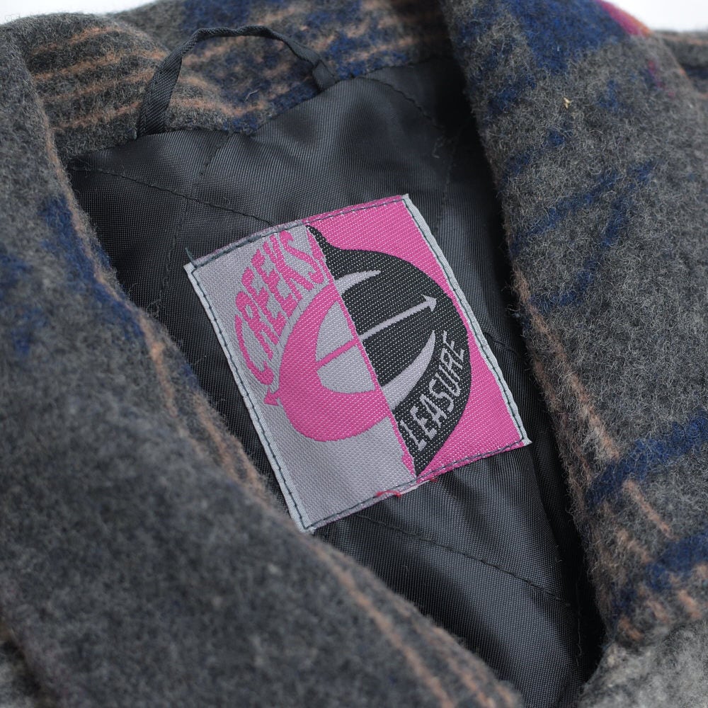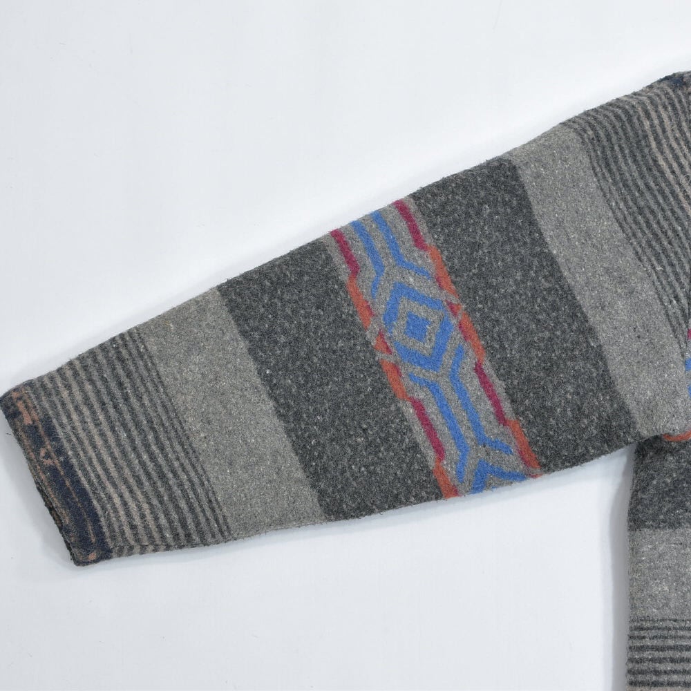 80~90s CREEKS クリークス ネイティブ柄 ウール ジャケット ブランケット コート アウター 中綿入り グレー キリム オルテガ トライバル ヴィンテージ ビンテージ 古着 メンズL〜XL相当
