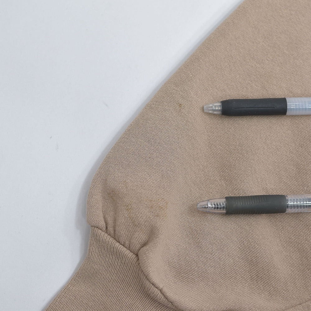 ・使用感や、経年による生地のヨレ、画像のように左腹部付近の小さな汚れや、両袖の手首付近や袖リブ周りのペイントのような汚れ、後ろ身頃の左肩付近のダメージなどありますが、その他目立つ汚れ、ダメージは見当たらず、ヴィンテージ古着に慣れている方であれば、問題無く着用して頂けると思います