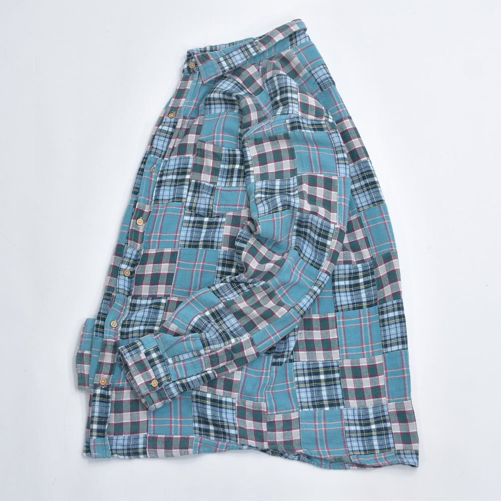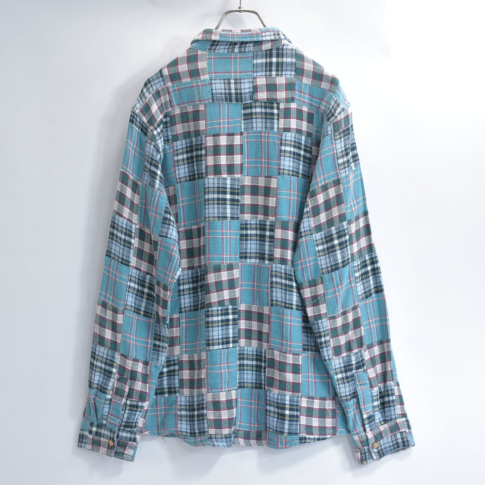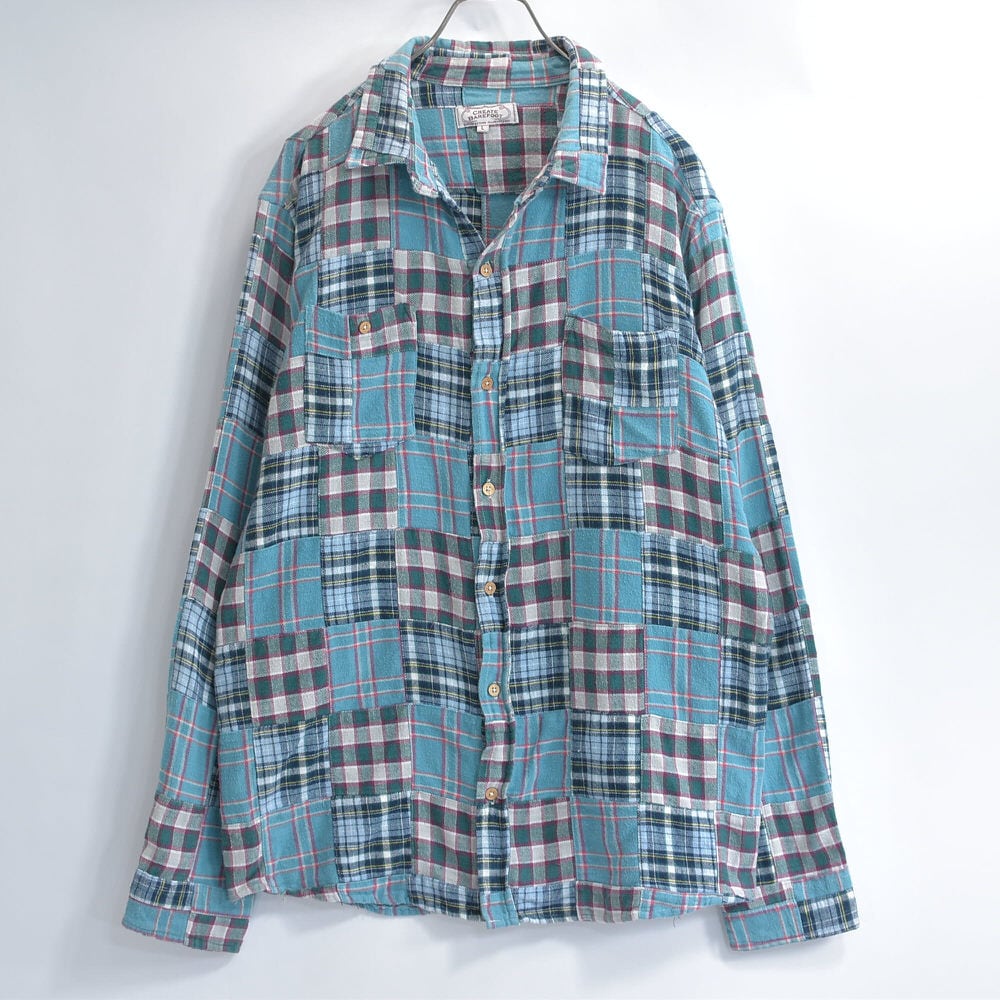 00s CREATE BAREFOOT パッチワーク デザイン フランネルシャツ ネルシャツ チェック クレイジーパターン マルチカラー ヴィンテージ ビンテージ 古着 メンズLサイズ