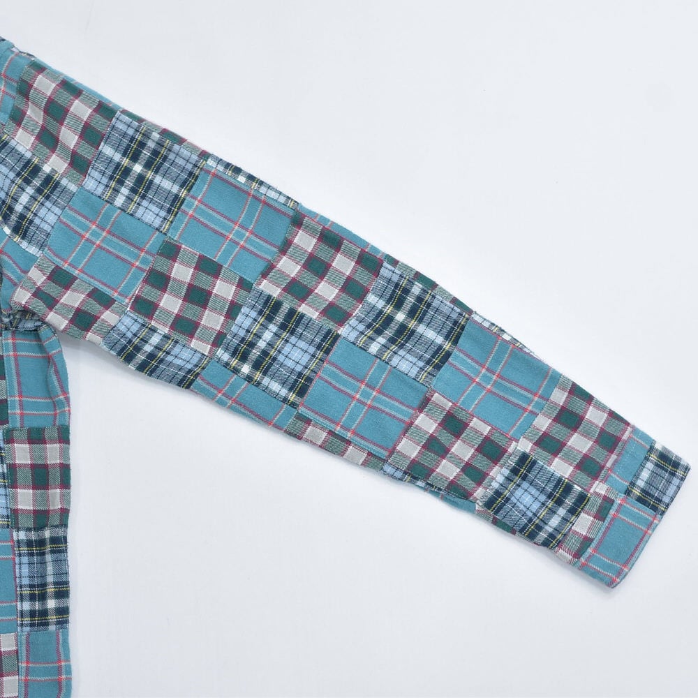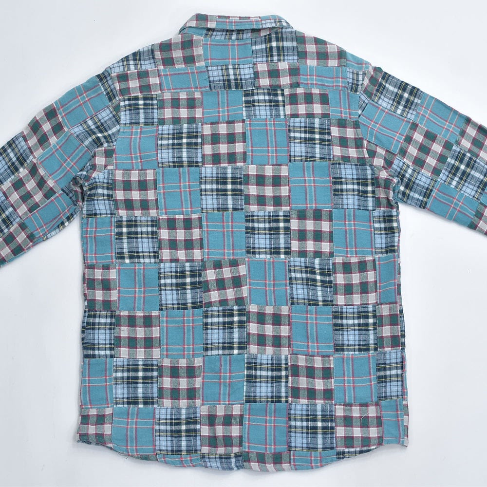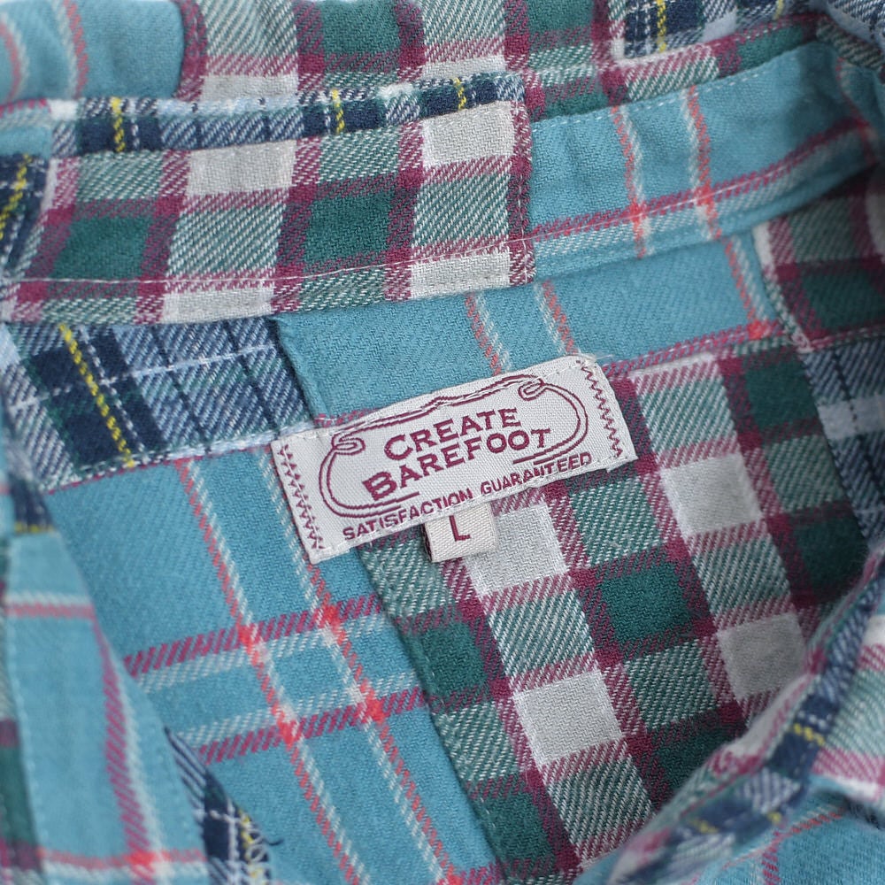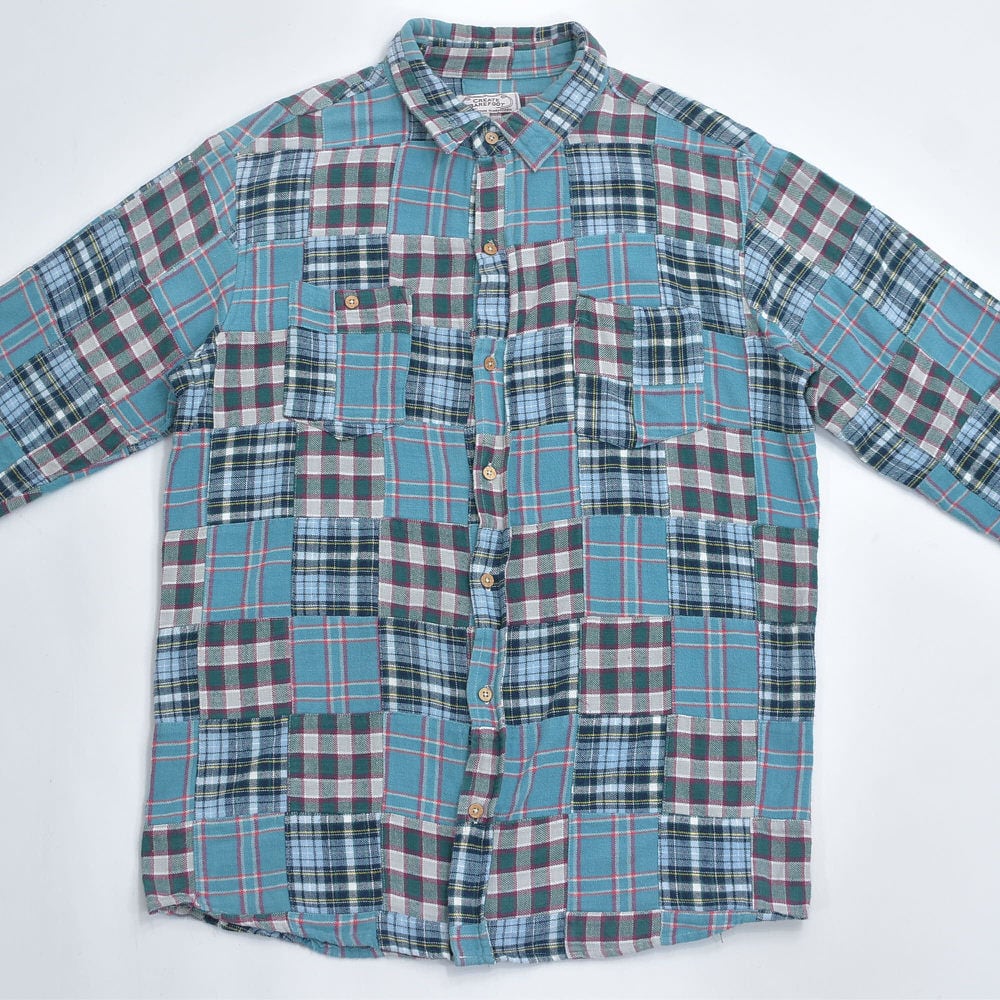00s CREATE BAREFOOT パッチワーク デザイン フランネルシャツ ネルシャツ チェック クレイジーパターン マルチカラー ヴィンテージ ビンテージ 古着 メンズLサイズ