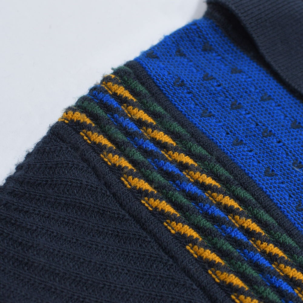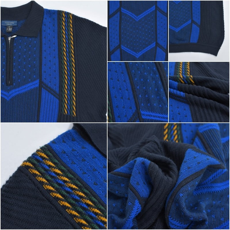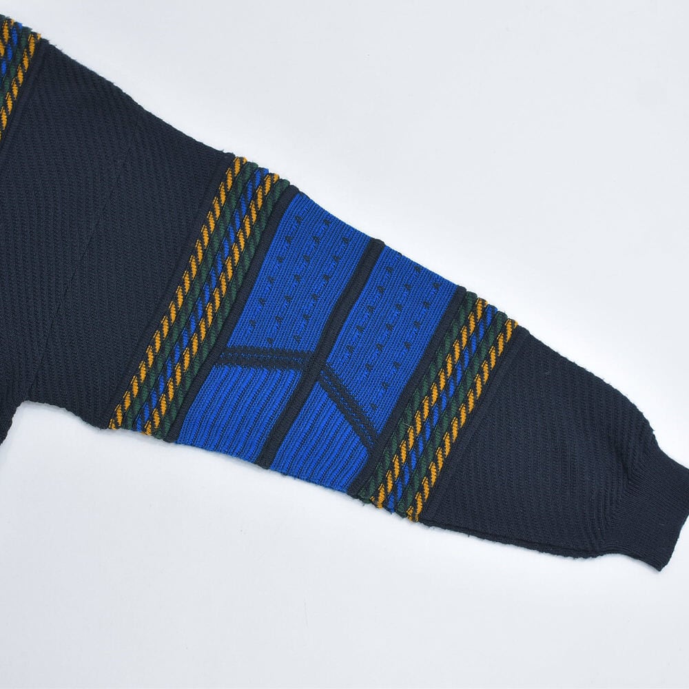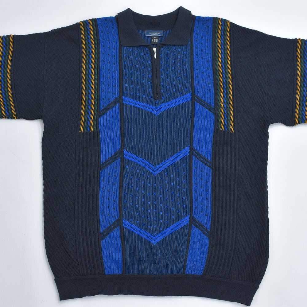 90~00s Euro CASUAL CLOTHES COMPANY ハーフジップ 立体編み デザイン 3Dニット セーター 紺 ネイビー ユーロヴィンテージ ビンテージ ヨーロッパ古着 メンズXXL相当