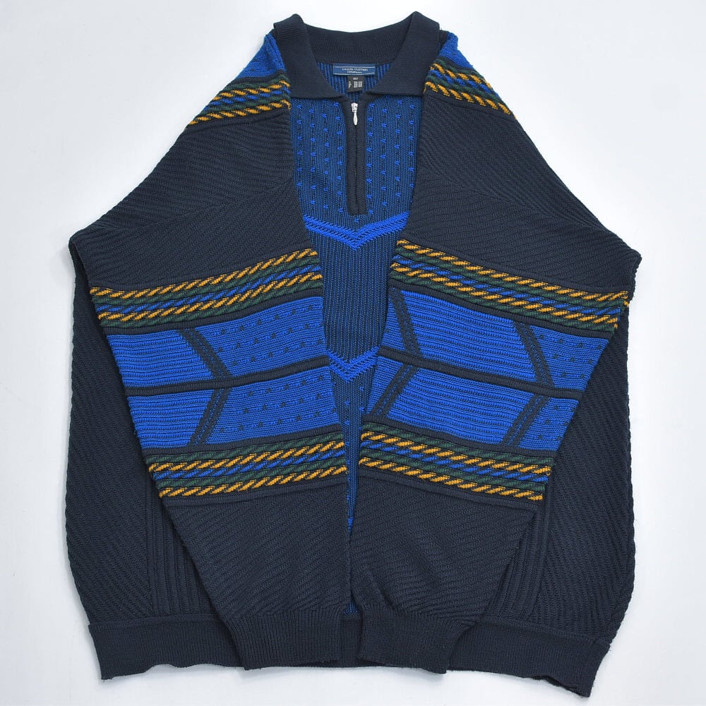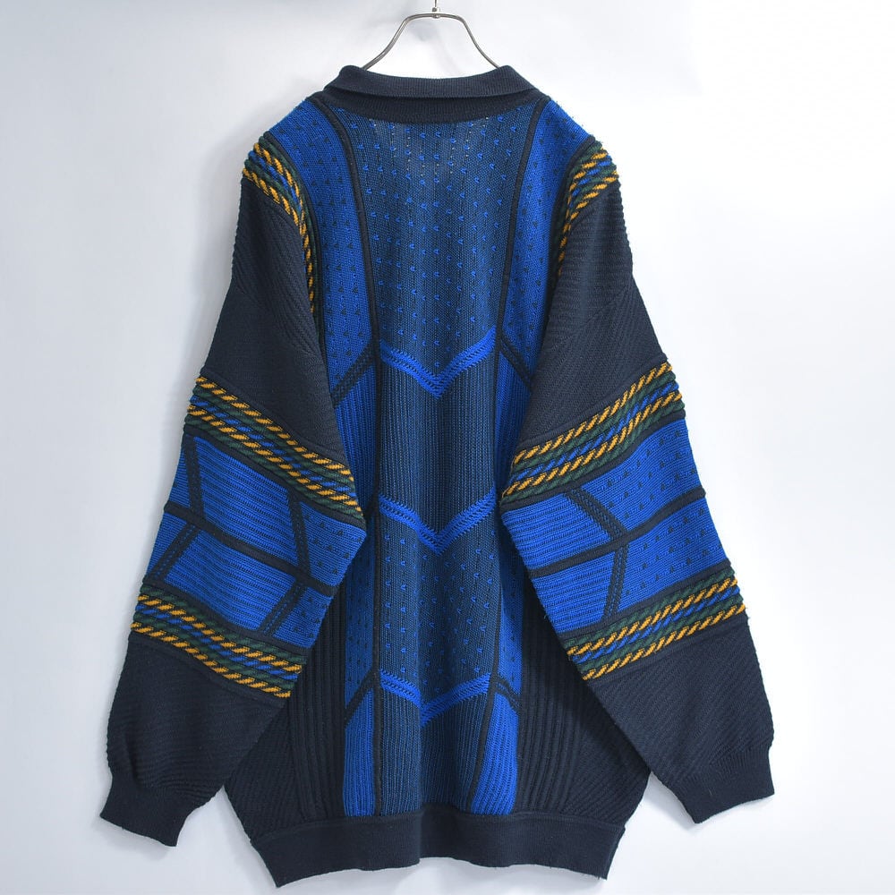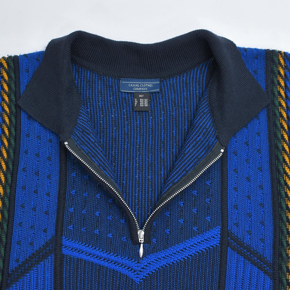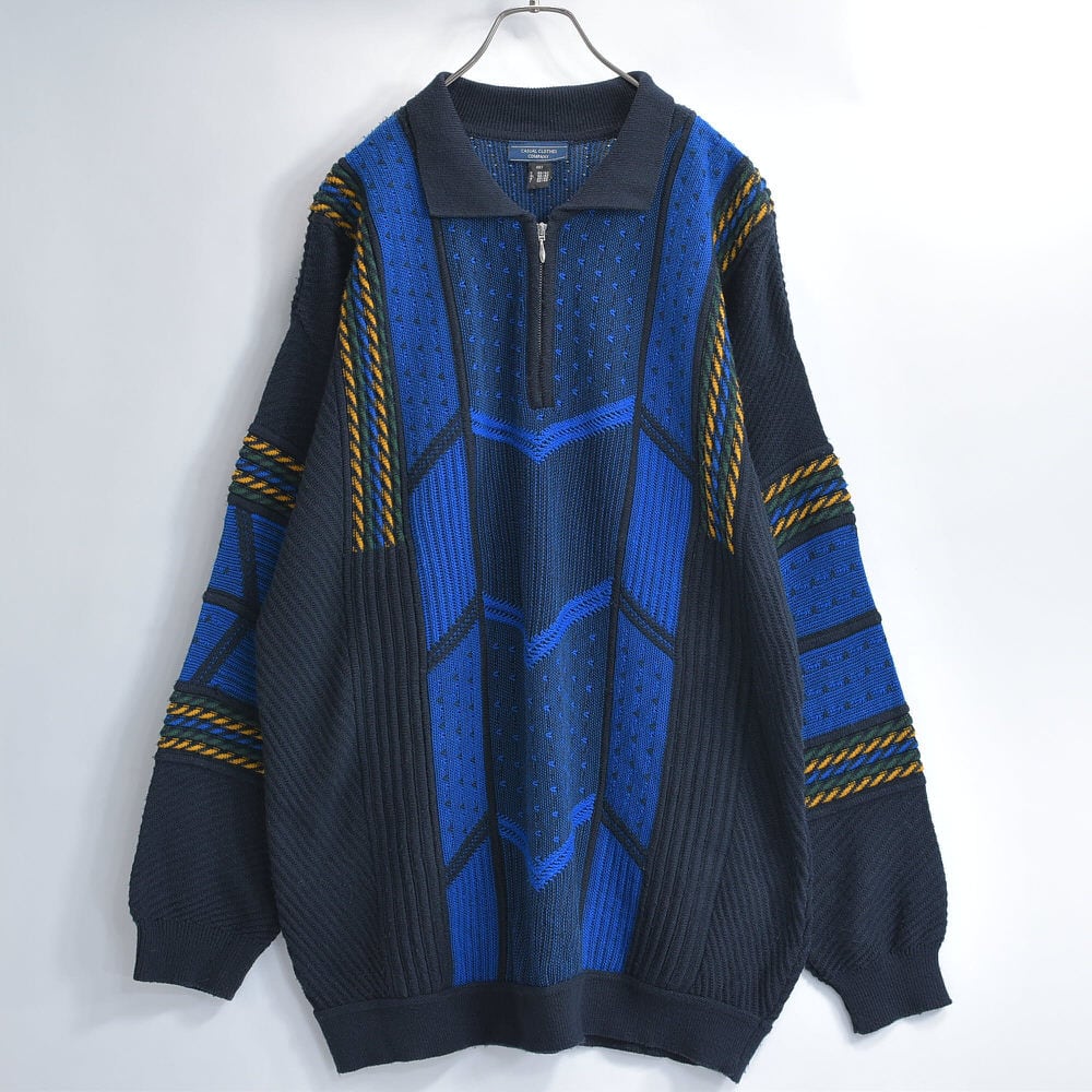 90〜00s Euro CASUAL CLOTHES COMPANY ハーフジップ 立体編み デザイン 3Dニット セーター 紺 ネイビー ユーロヴィンテージ ビンテージ ヨーロッパ古着 メンズXXL相当