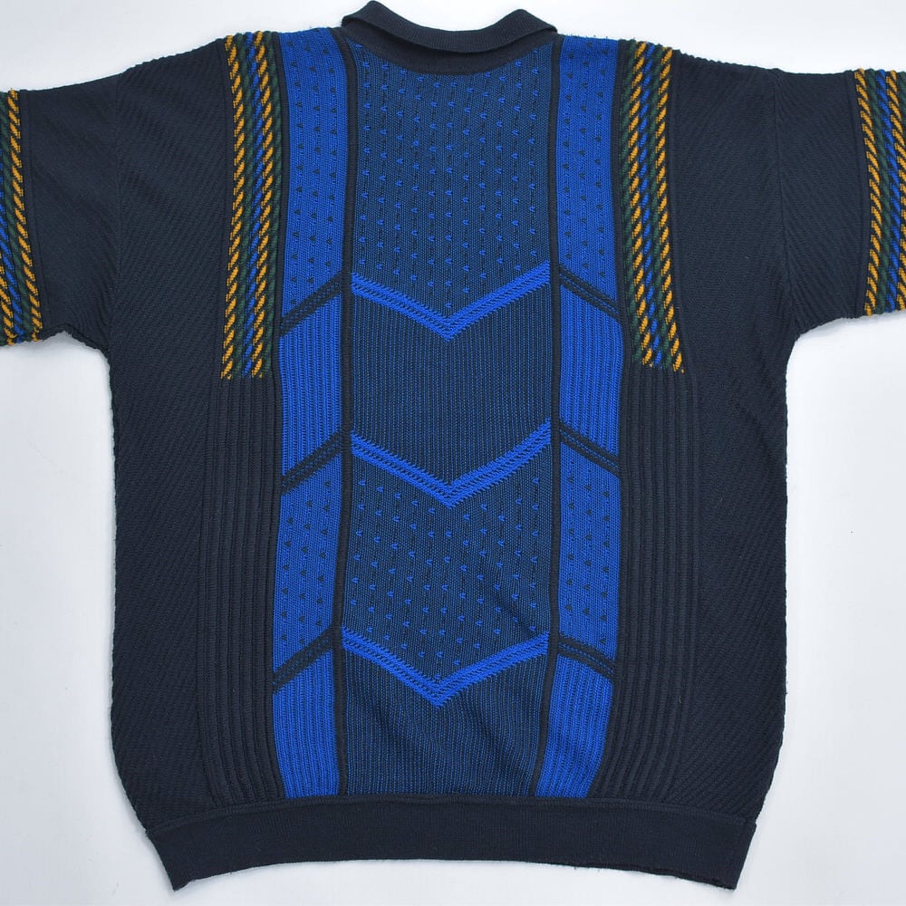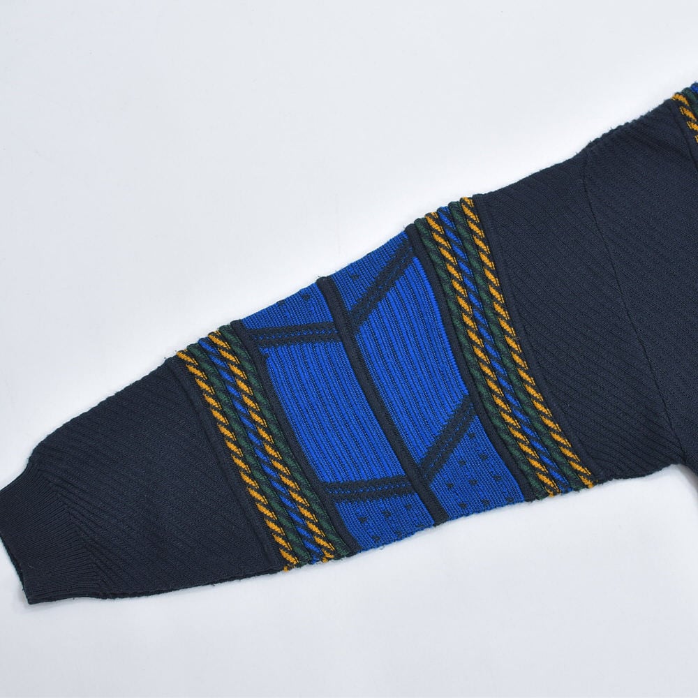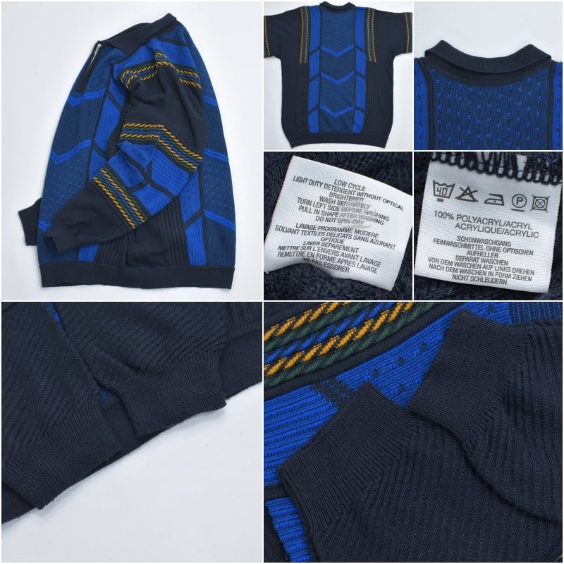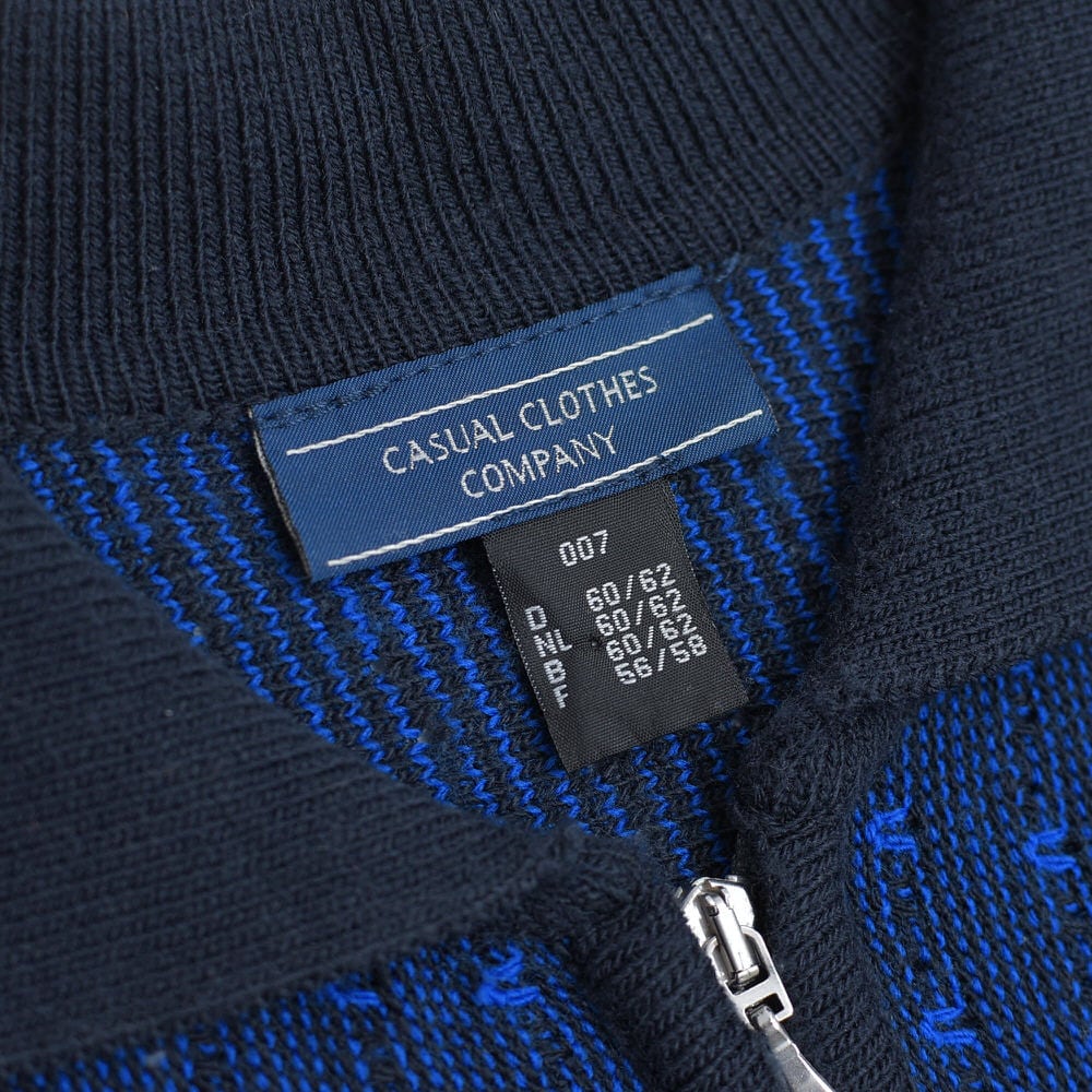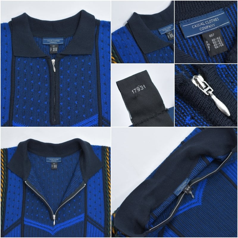 90〜00s Euro CASUAL CLOTHES COMPANY ハーフジップ 立体編み デザイン 3Dニット セーター 紺 ネイビー ユーロヴィンテージ ビンテージ ヨーロッパ古着 メンズXXL相当