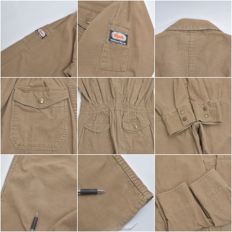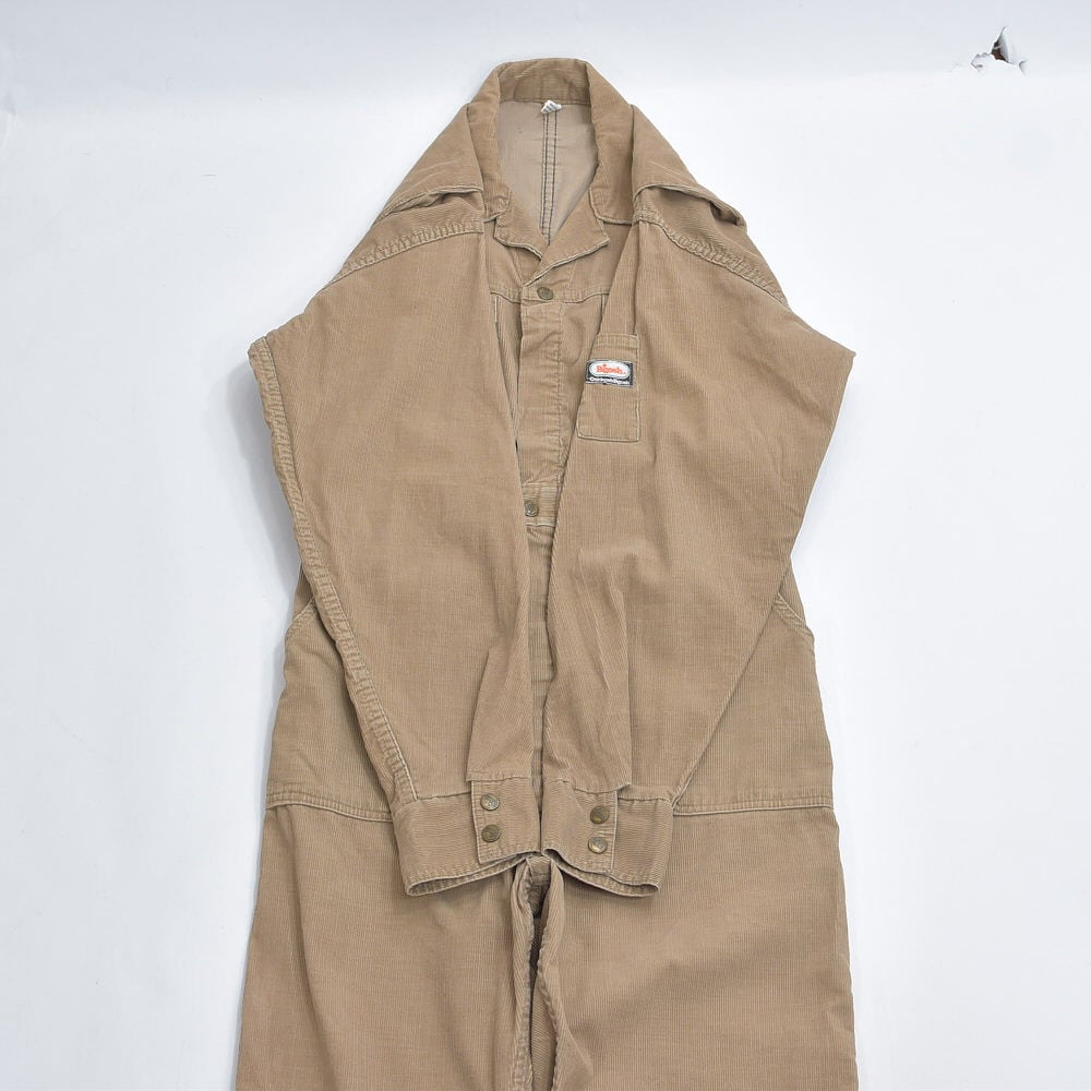 70s Oshkosh B'gosh オシュコシュ コーデュロイ ジャンプスーツ オールインワン つなぎ フレア ベージュ ビンテージ ヴィンテージ USA アメリカ 古着メンズL相当