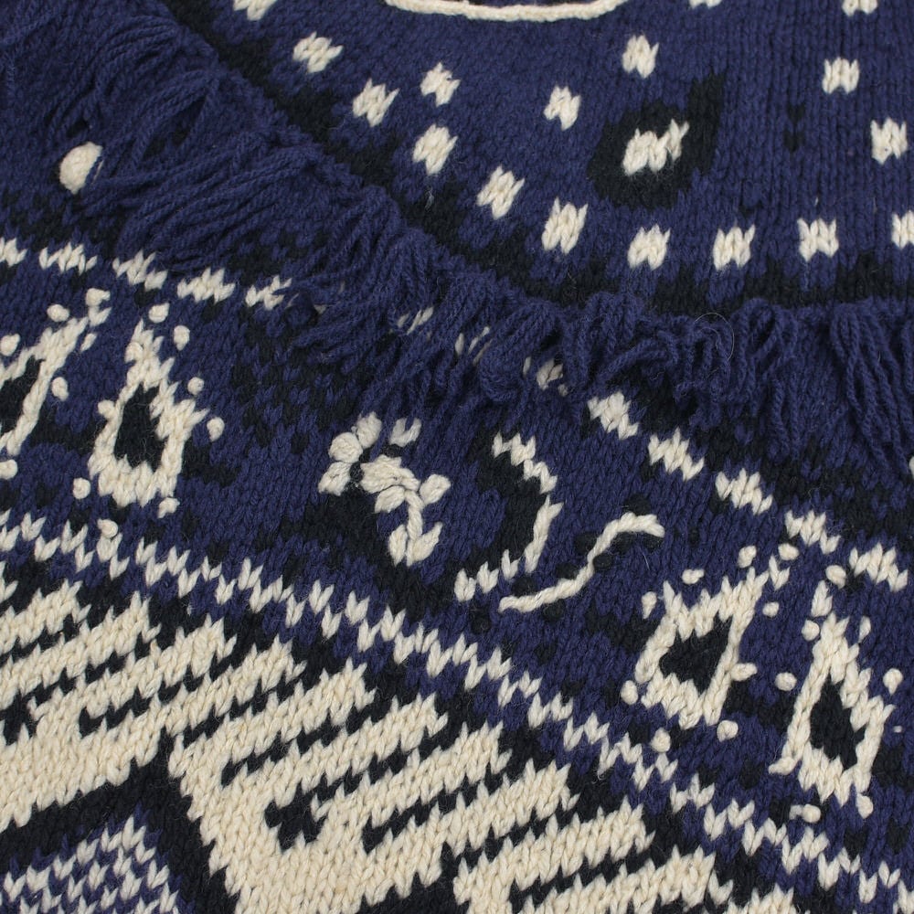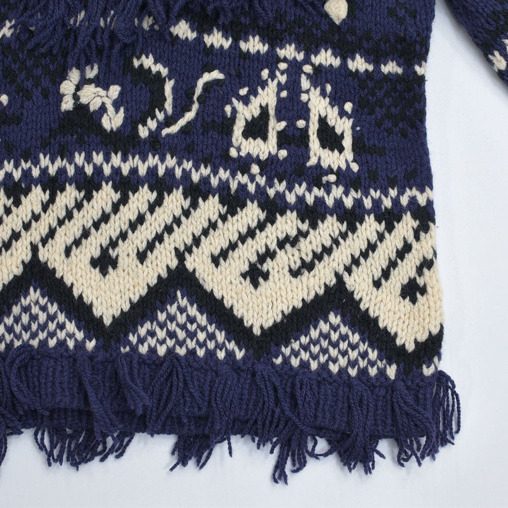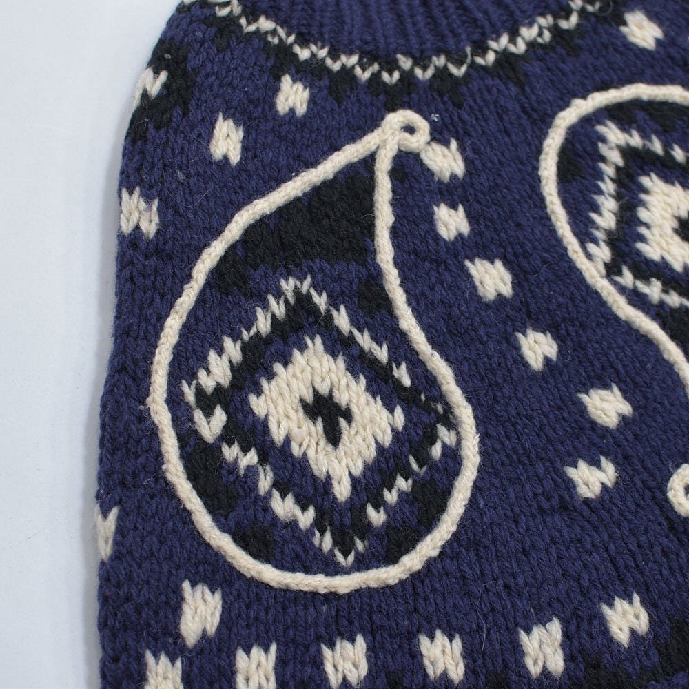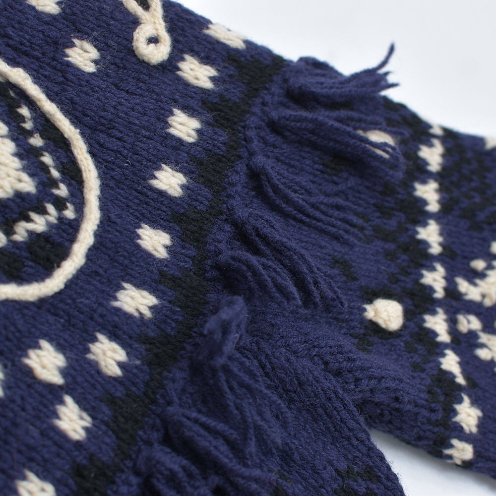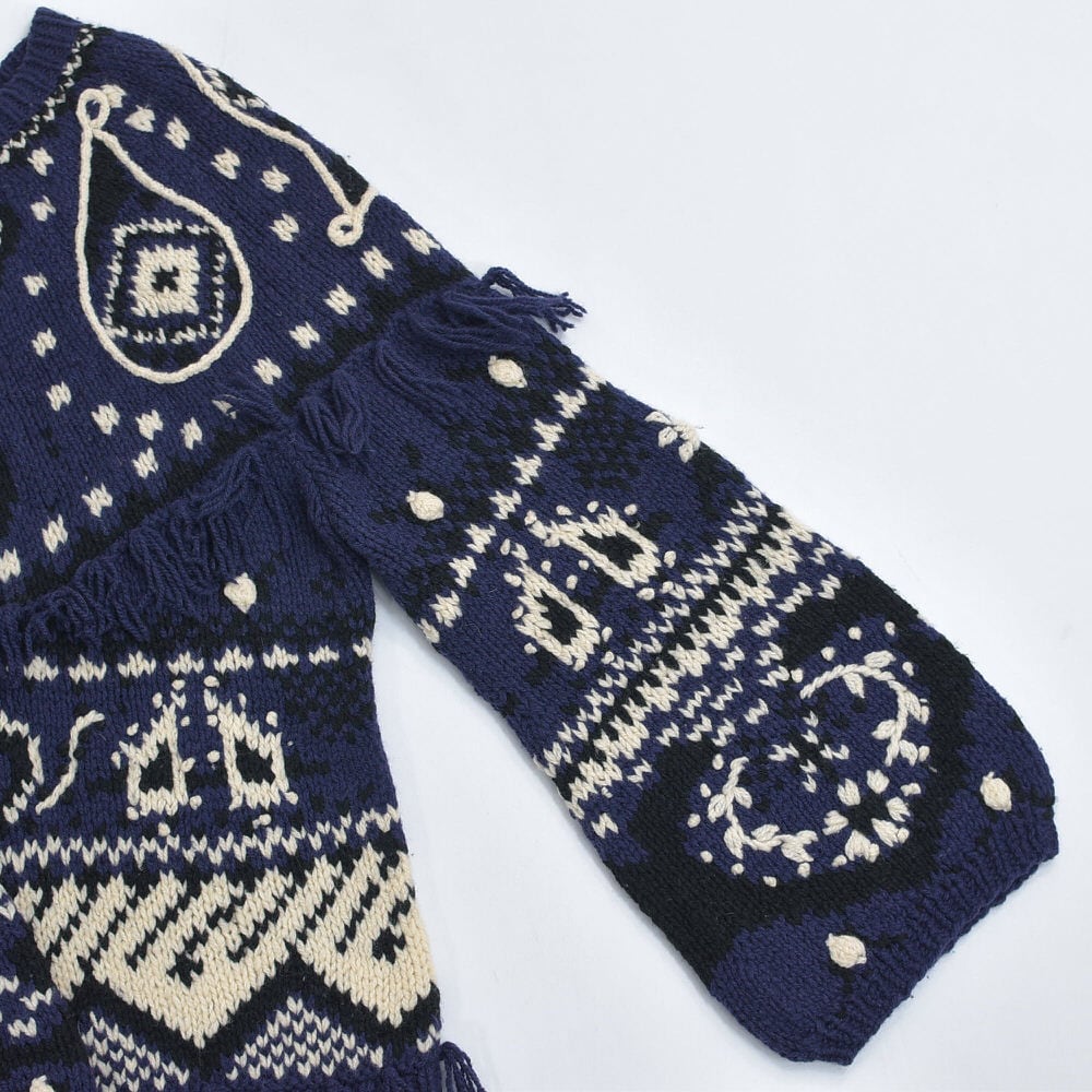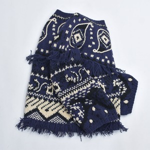 Hand Made ハンドメイド ペイズリー柄 フリンジクデザイン フレアスリーブ クルーネックニット セーター 幾何学模様 ヴィンテージ ビンテージ 古着 レディースM相当