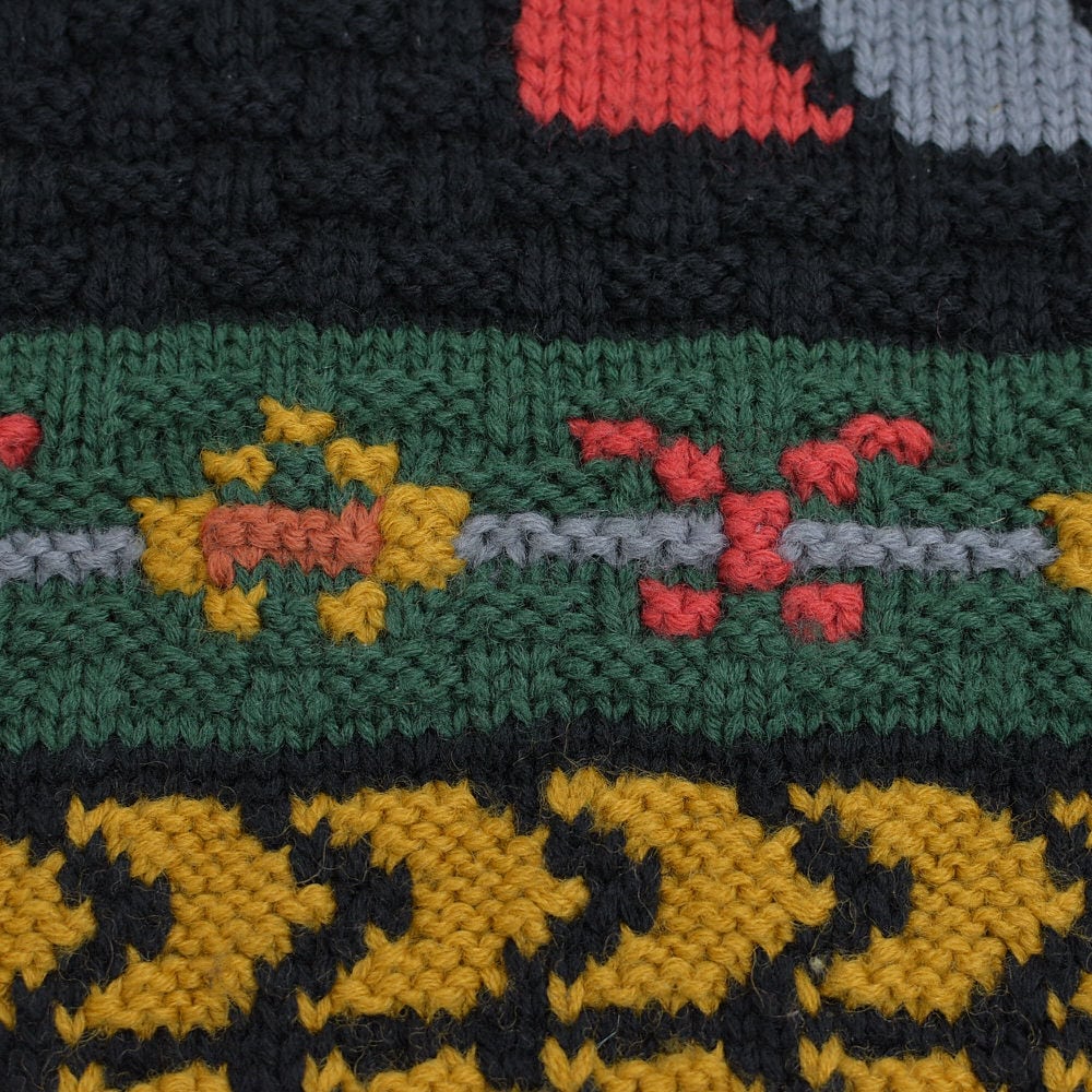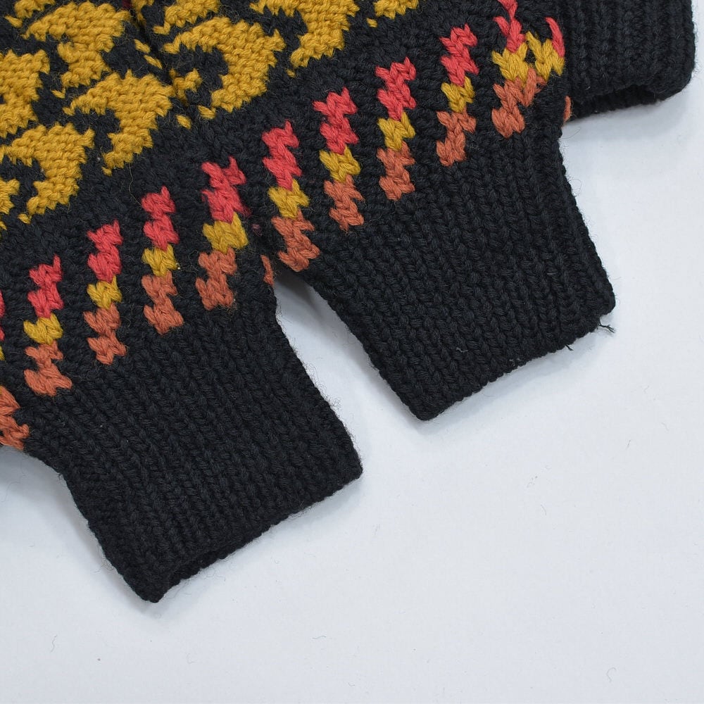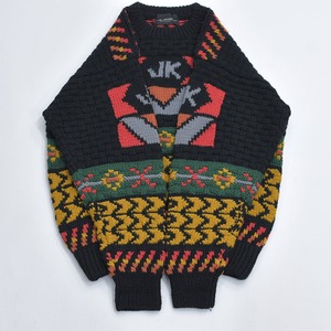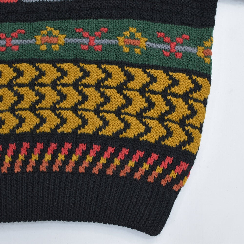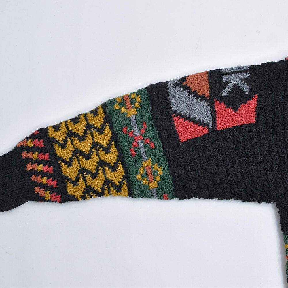 80~90s Mr. JUNKO コシノジュンコ ミスタージュンコ ロゴ 幾何学模様 ジャガードデザイン クルーネック プルオーバーニット セーター 黒 マルチカラー ジャパンヴィンテージ ビンテージ 古着 メンズMサイズ