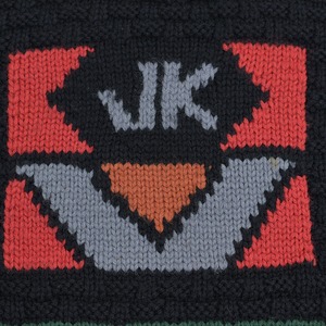 漆黒のボディを舞台に、JKの文字が誇らしげに主張し、幾何学とフォークロア調の色彩がせめぎ合う一枚