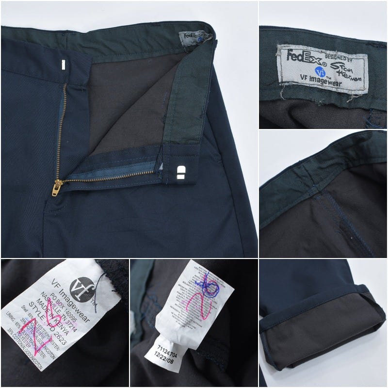 リサイズ 00s VF Imagewear製 FedEx リフレクターライン カーゴワークパンツ ダブルフェイス ダークネイビー ユニフォーム ヴィンテージ ビンテージ USA アメリカ古着 メンズW28インチ相当