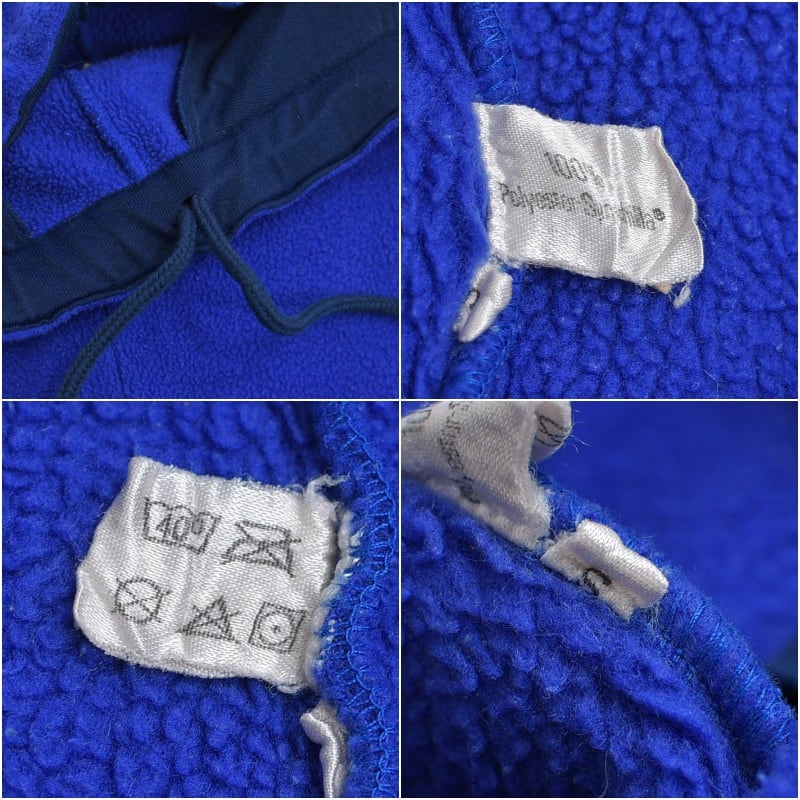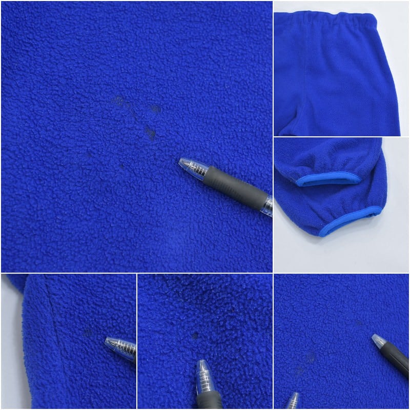 全体的に小さな毛玉、内側のウエストバンドのダメージ、右太もも付け根内側の付近や、左太もも周りやヒザ付近にフリースの熱による焼け跡などがありますが、その他目立つ汚れ、ダメージは見当たらず、ヴィンテージ古着に慣れている方であれば、問題無く着用して頂けると思います