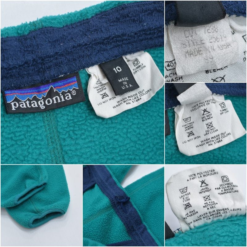 80~90s USA製 Patagonia パタゴニア Rマークダグ フリースパンツ シンチラパンツ スリムシルエット ティールグリーン レアカラー ヴィンテージ ビンテージ アメリカ古着 レディースW84~88cm