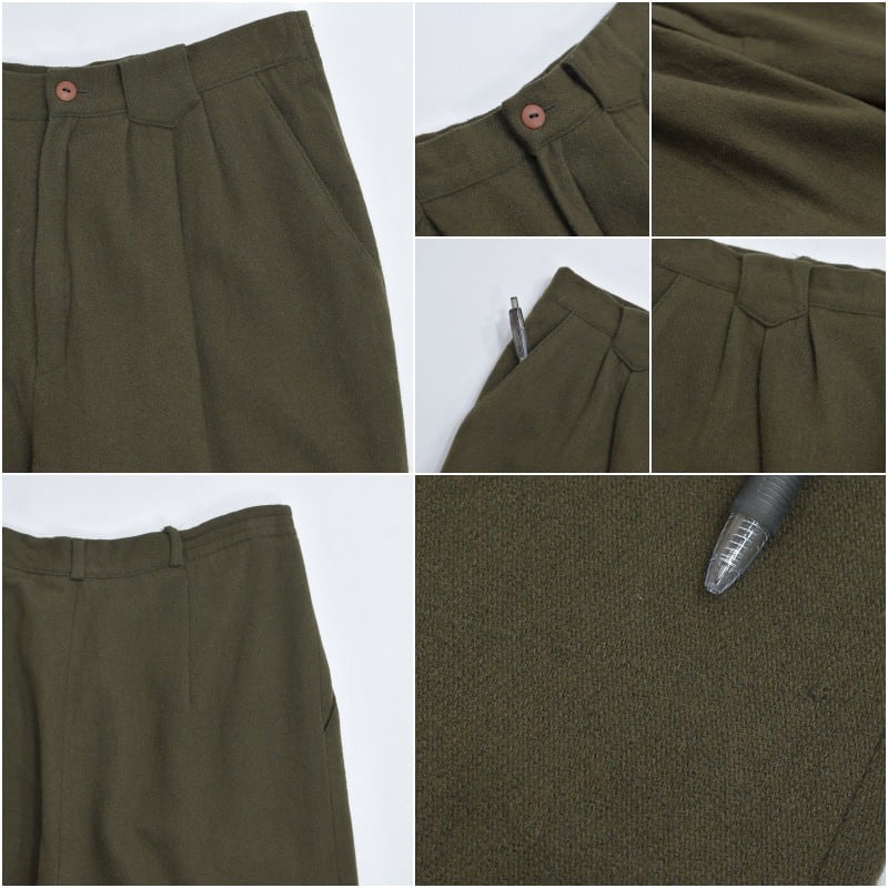 80s〜90s FUNDAMENTAL THINGS ファンメンタル シングス ウールブレンド 1タック テーパードパンツ TALONジッパー オリーブ ヴィンテージ USA アメリカ 古着 レディースW82cm