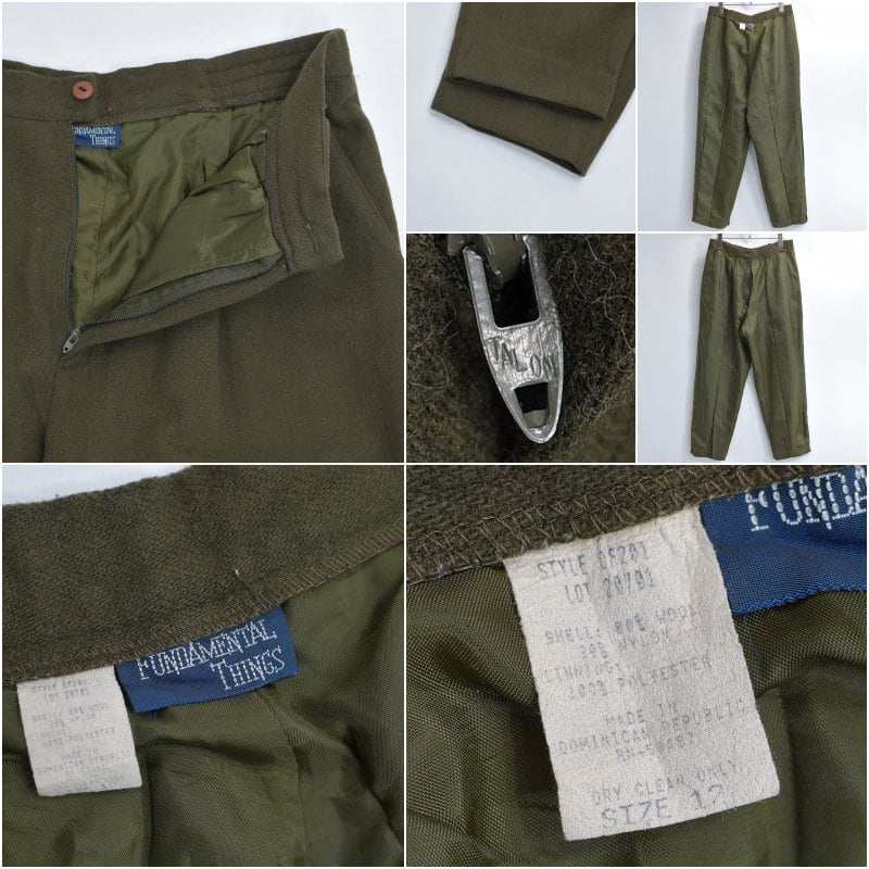 80s~90s FUNDAMENTAL THINGS ファンメンタル シングス ウールブレンド 1タック テーパードパンツ TALONジッパー オリーブ ヴィンテージ USA アメリカ 古着 レディースW82cm