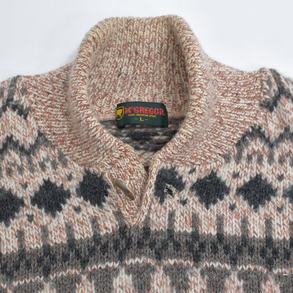80~90s McGREGOR マックレガー フェアアイル柄 ショールカラー トグルボタン デザイン プルオーバーニット セーター ヴィンテージ ビンテージ 古着 メンズLサイズ