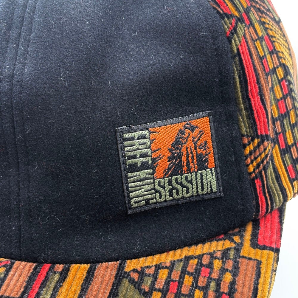 80〜90s 日本製 FREE KING SESSION コーデュロイ切替 デザイン スナップバックキャップ アフリカンパターン調 ヴィンテージ ビンテージ 古着 ユニセックスデザイン