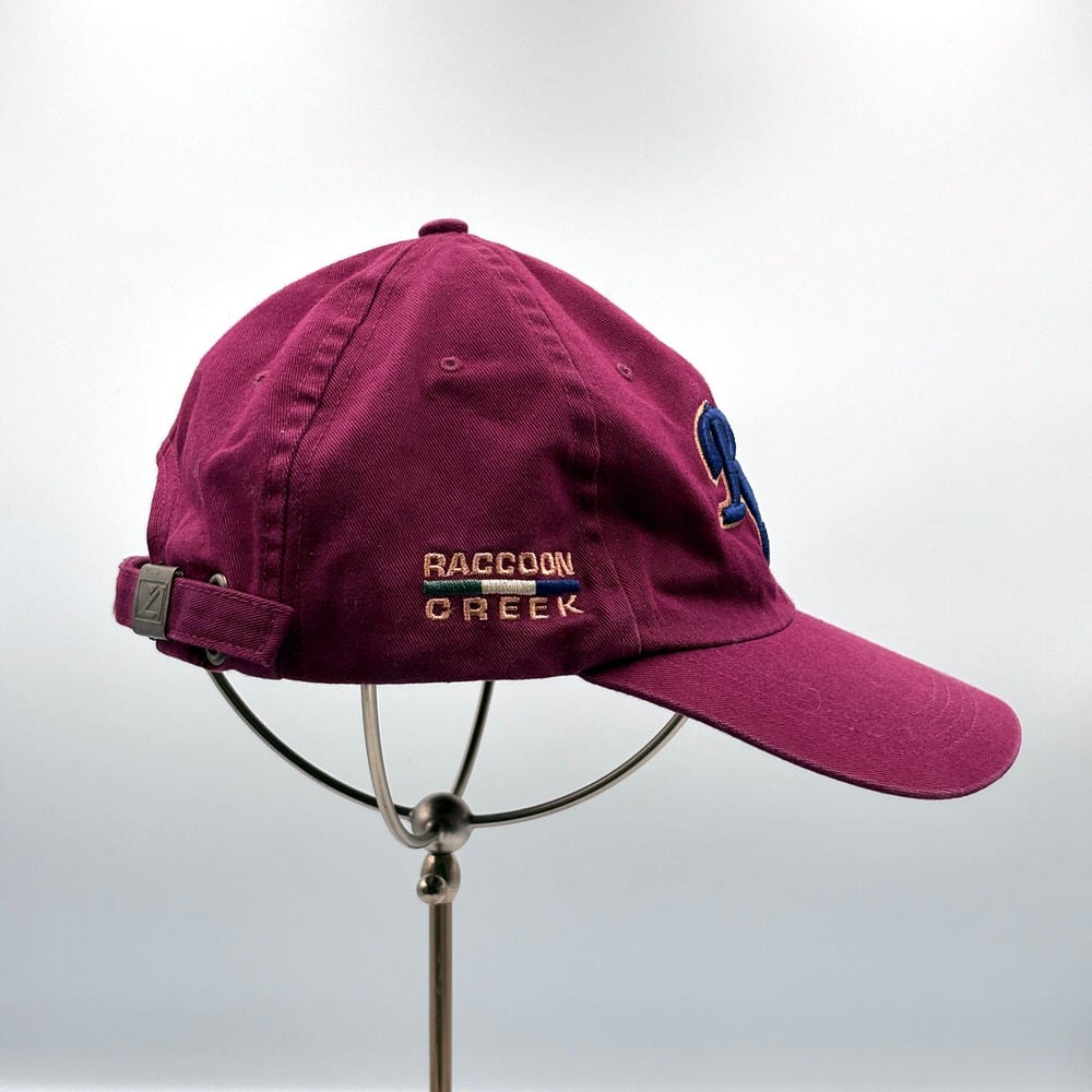 90s~ AHEAD アヘッド RACCOON CREEK 刺繍ロゴ デザイン パネルキャップ 帽子 企業物 ヴィンテージ ビンテージ 古着 バーガンディ ユニセックスデザイン