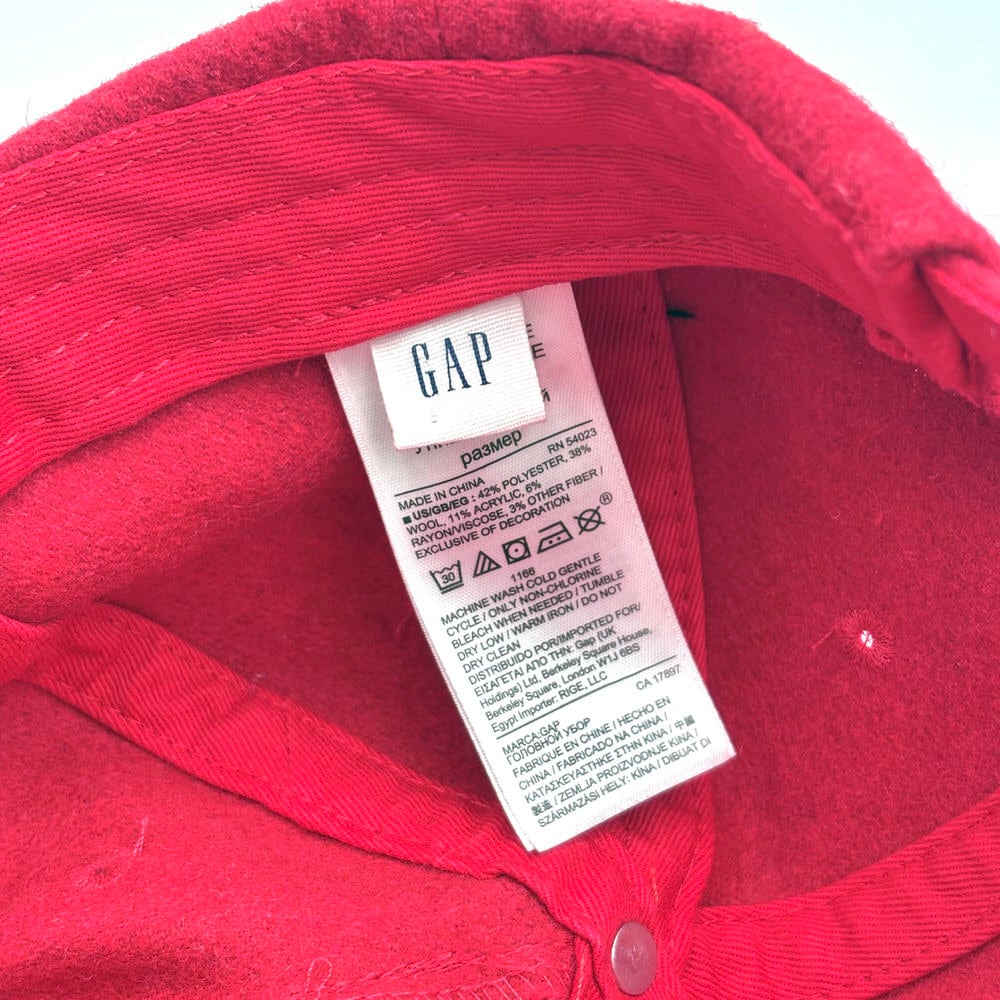 10s GAP ギャップ ビッグロゴ刺繍 ウールブレンド フェルト 6パネル キャップ 赤 レッド ヴィンテージ ビンテージ 古着 ユニセックスデザイン