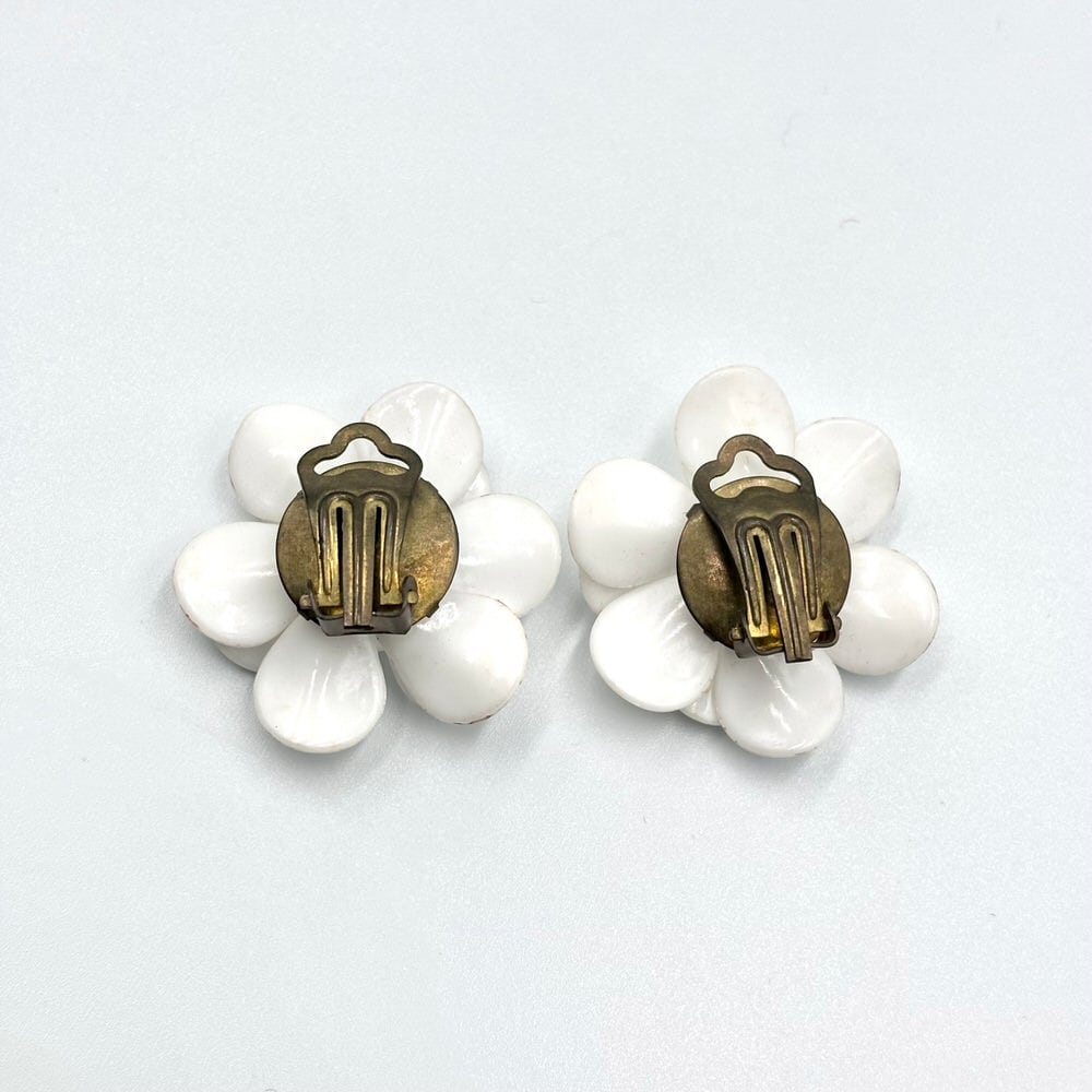Vintage 日本製 JAPAN ヴィンテージ フラワー モチーフ 立体 花びら イヤリング コスチュームジュエリー 白 ホワイト ヴィンテージアクセサリー ビンテージ 古着 レディース