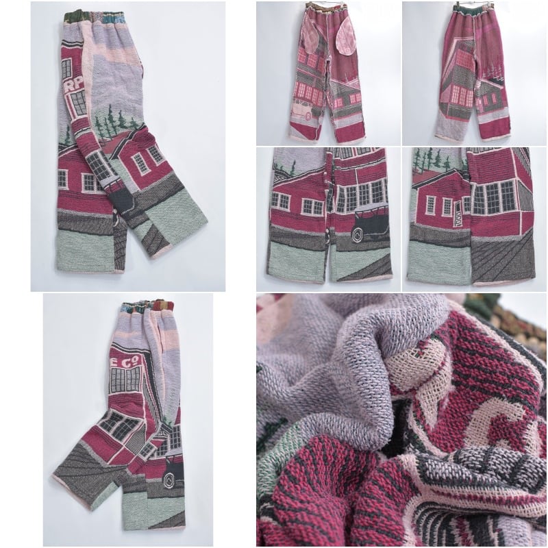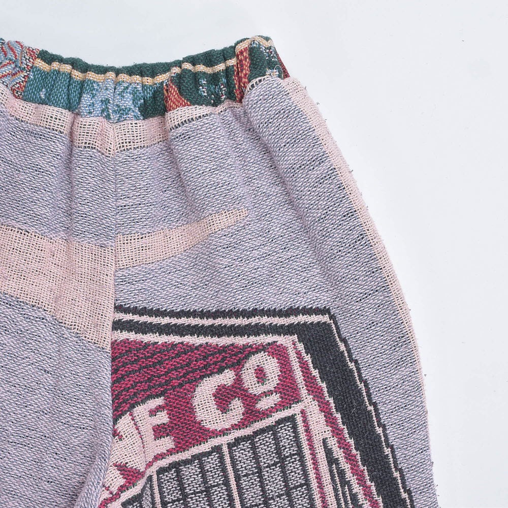 Remake リメイク ルーズシルエット ジャガード 総柄 デザイン ラグパンツ ブランケット タペストリー パッチワーク イージーパンツ 再構築 ゴブラン ユニセックスサイズ W62~102cm