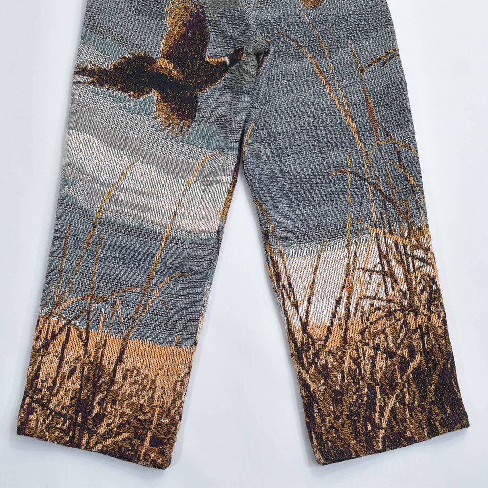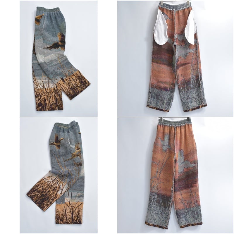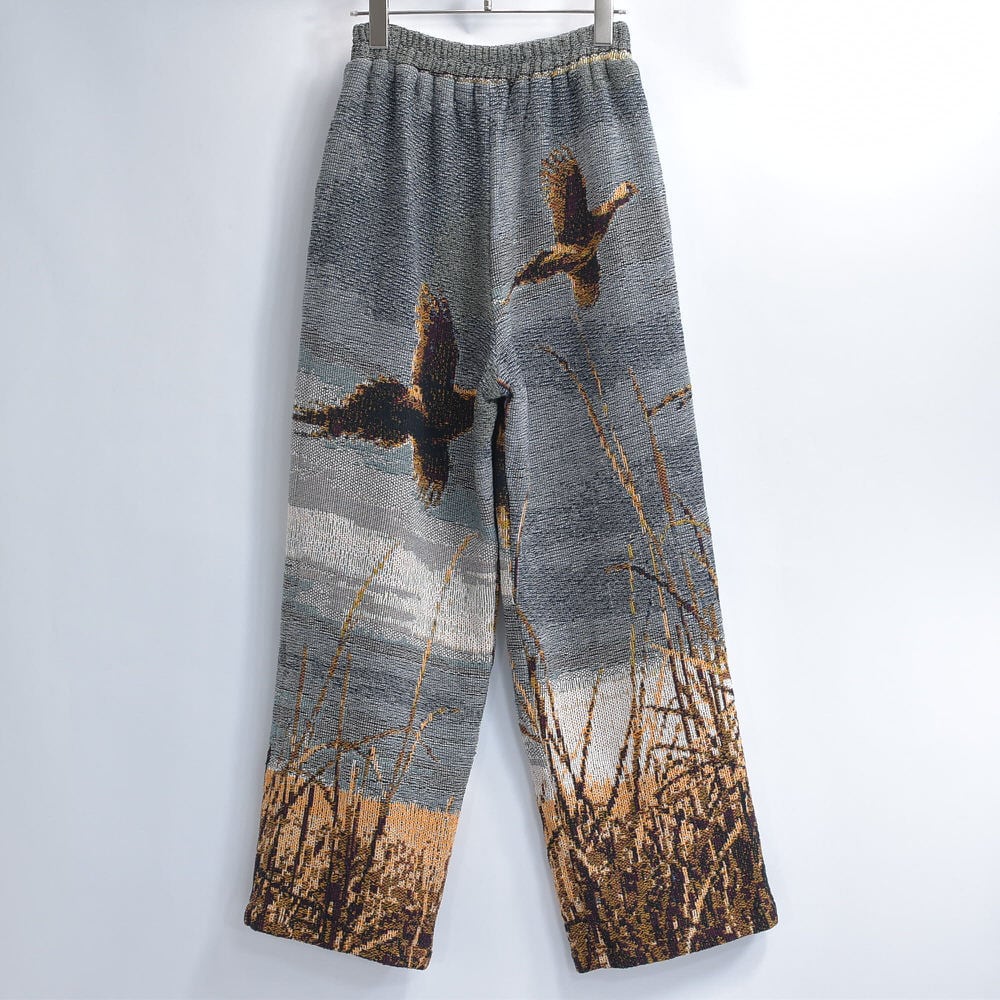 Remake リメイク ルーズシルエット ジャガード 総柄 デザイン ラグパンツ 鳥 風景柄 ブランケット タペストリー パッチワーク イージーパンツ 再構築 ゴブラン ユニセックスサイズ W61~96cm