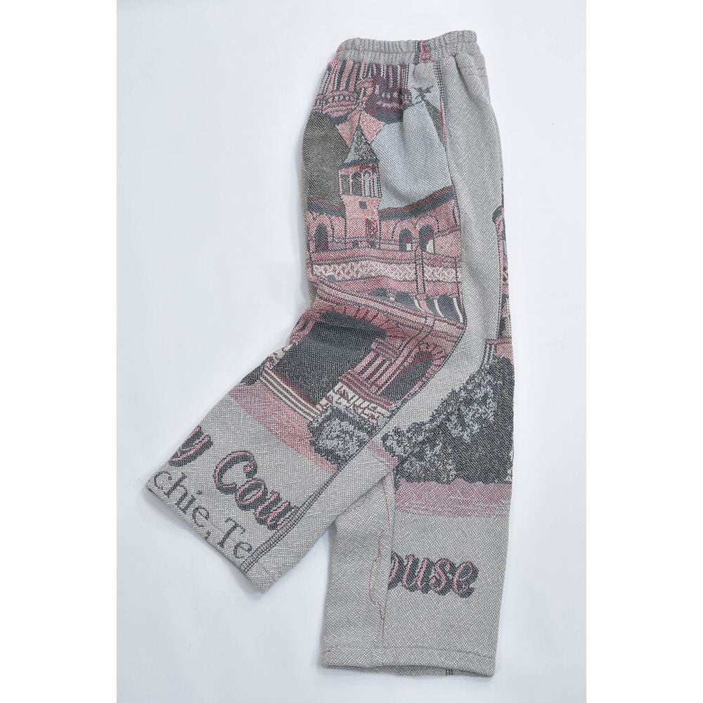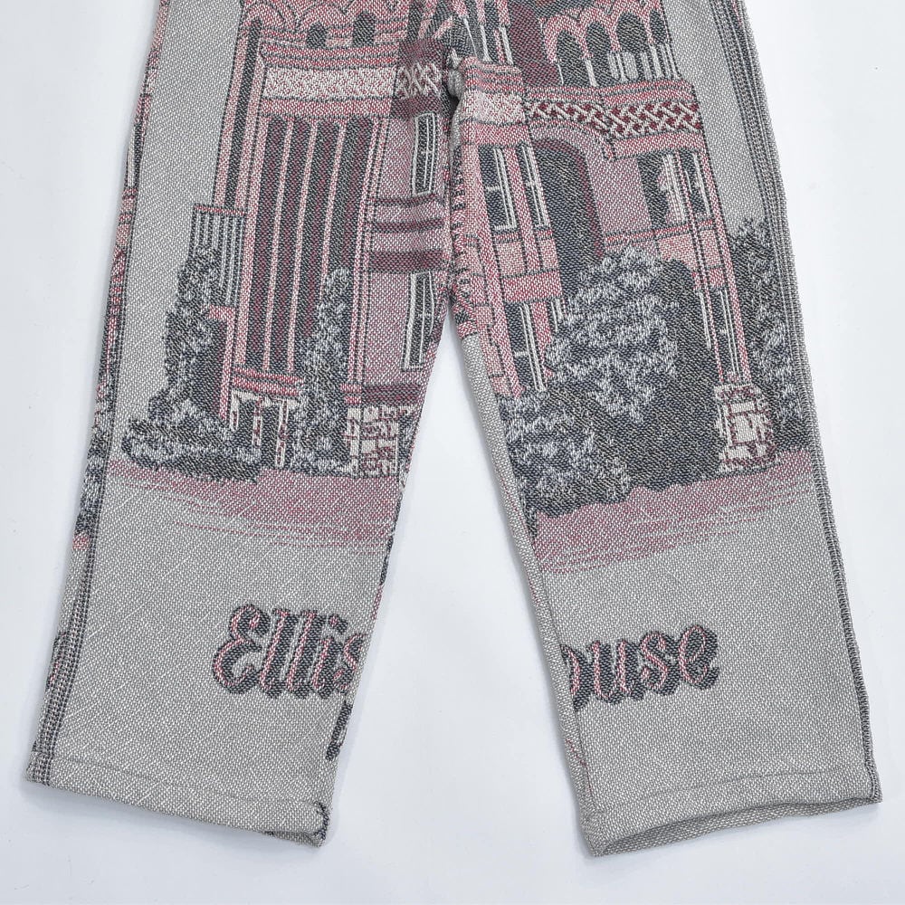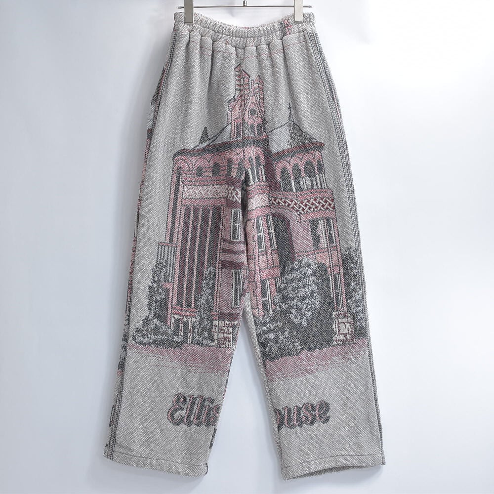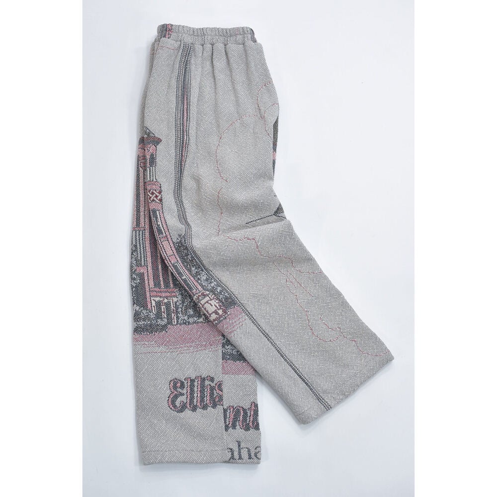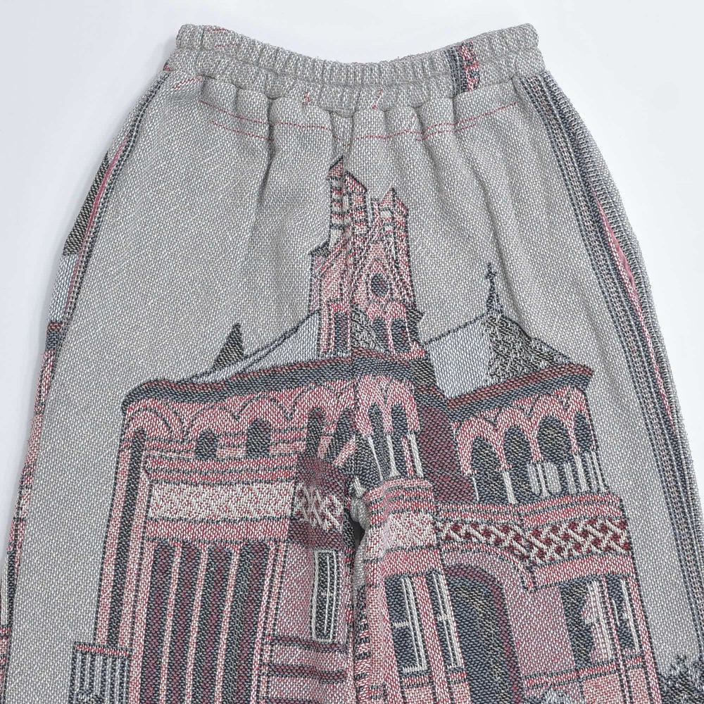 Remake リメイク ルーズシルエット ジャガード 総柄 デザイン ラグパンツ 風景柄 建物 ブランケット タペストリー パッチワーク イージーパンツ 再構築 ゴブラン ユニセックスサイズ W64~97cm