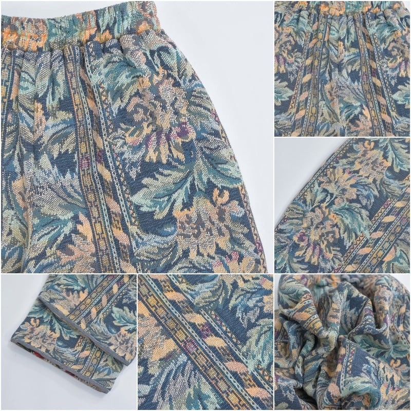 Remake リメイク ルーズシルエット ジャガード 総柄 デザイン ラグパンツ アンティーク調 ボタニカル柄 ブランケット タペストリー パッチワーク イージーパンツ 再構築 ゴブラン ユニセックスサイズ W60〜98cm