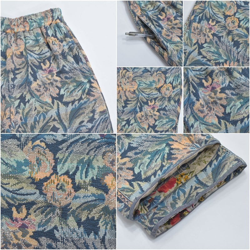 Remake リメイク ルーズシルエット ジャガード 総柄 デザイン ラグパンツ アンティーク調 ボタニカル柄 ブランケット タペストリー パッチワーク イージーパンツ 再構築 ゴブラン ユニセックスサイズ W60~98cm
