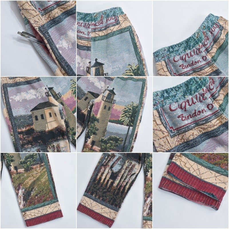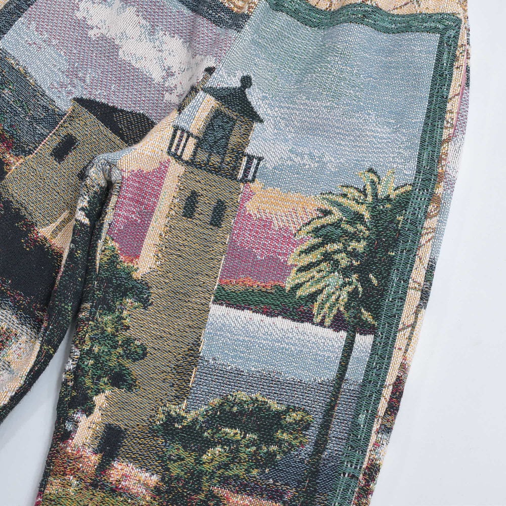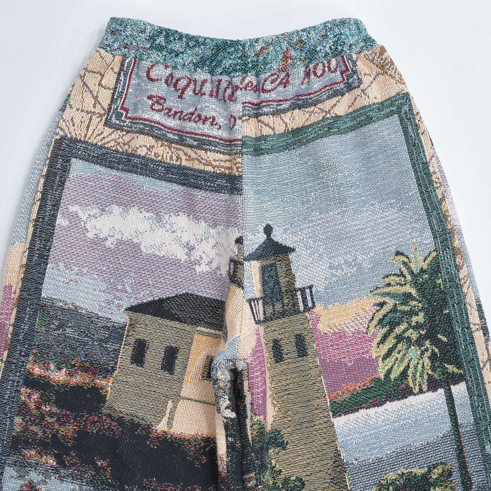Remake リメイク ルーズシルエット 灯台 風景柄 ジャガード 総柄 デザイン ラグパンツ ブランケット タペストリー パッチワーク イージーパンツ 再構築 ゴブラン ユニセックスサイズ W62~98cm