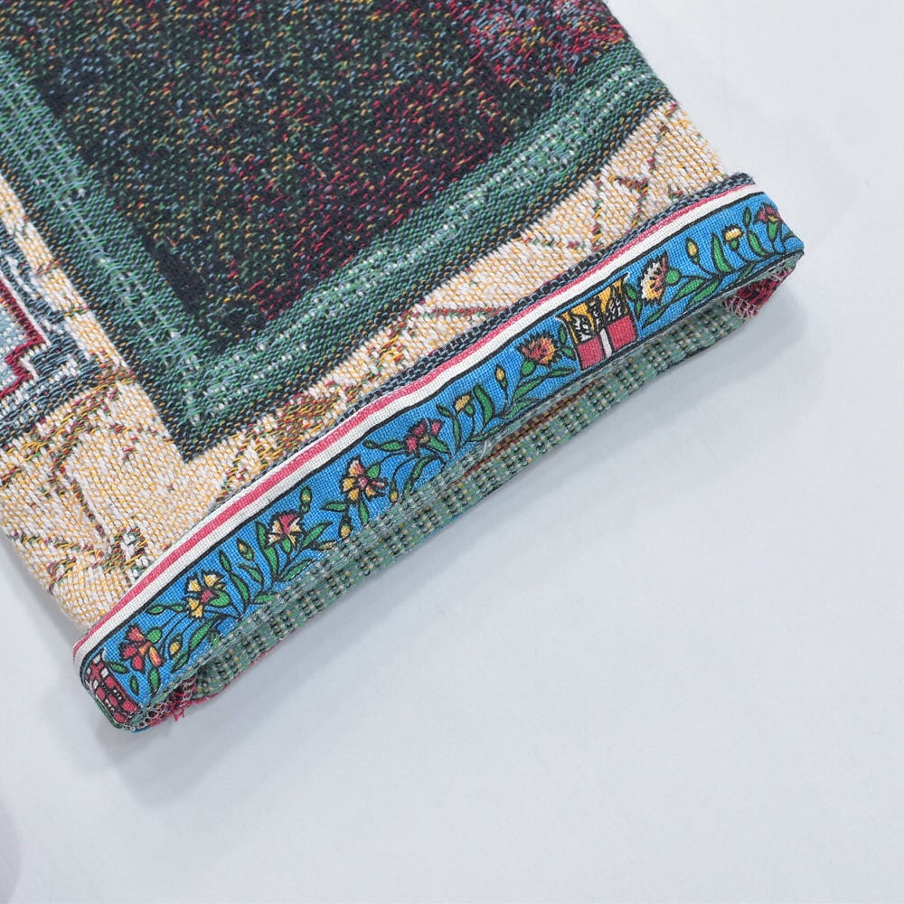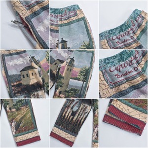 Remake リメイク ルーズシルエット 灯台 風景柄 ジャガード 総柄 デザイン ラグパンツ ブランケット タペストリー パッチワーク イージーパンツ 再構築 ゴブラン ユニセックスサイズ W62〜98cm