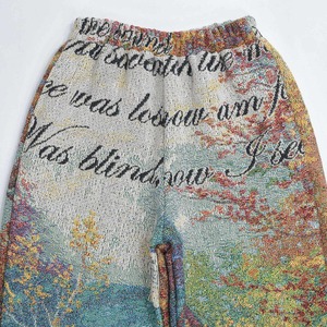 Remake リメイク ルーズシルエット 風景柄 ジャガード 総柄 デザイン ラグパンツ ブランケット タペストリー パッチワーク イージーパンツ 再構築 ゴブラン ユニセックスサイズ W63~99cm