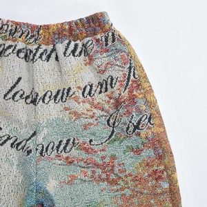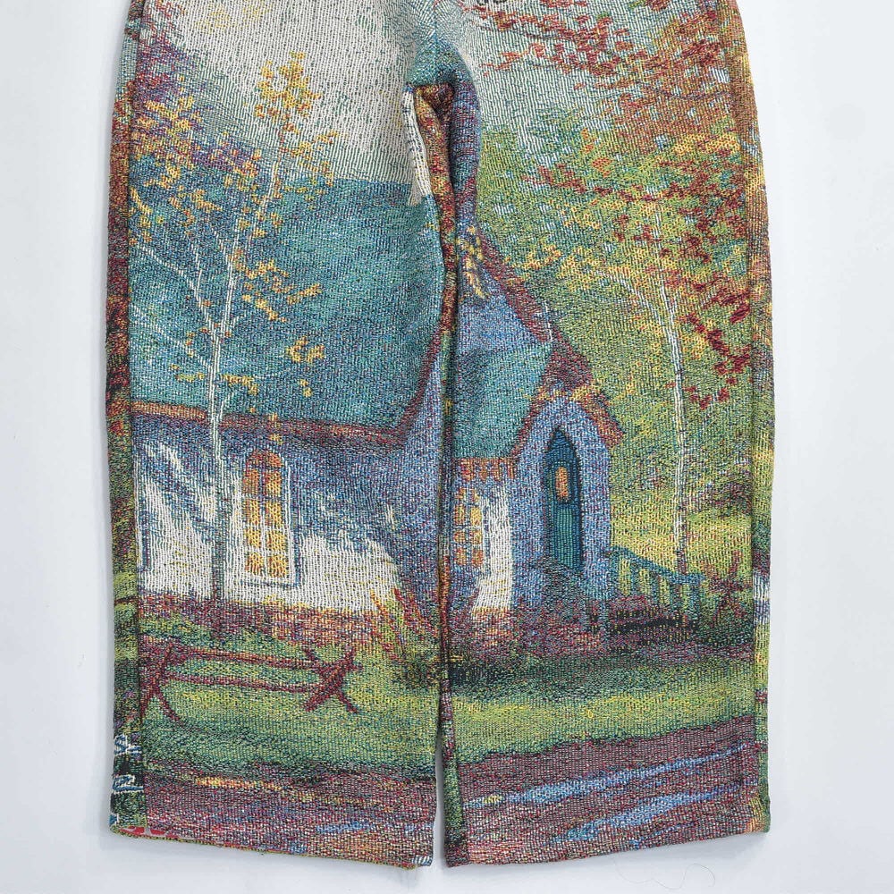 Remake リメイク ルーズシルエット 風景柄 ジャガード 総柄 デザイン ラグパンツ ブランケット タペストリー パッチワーク イージーパンツ 再構築 ゴブラン ユニセックスサイズ W63〜99cm