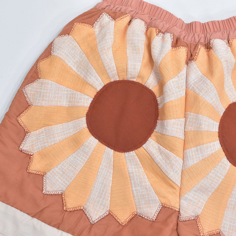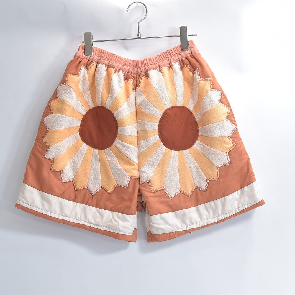 Remake リメイク ハンドメイド パッチワーク キルト デザイン ルーズシルエット ショートパンツ ブラウン 花柄 幾何学 再構築 短パン ツギハギ W67~104cm