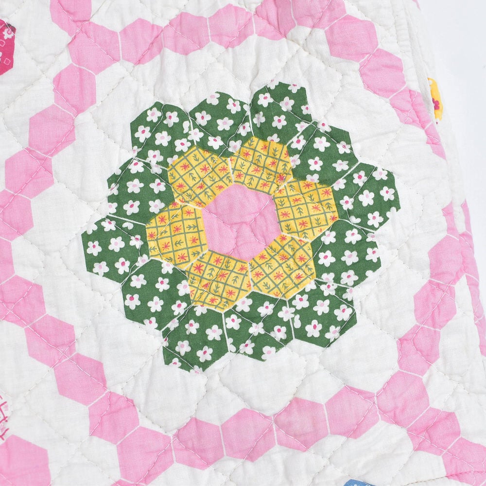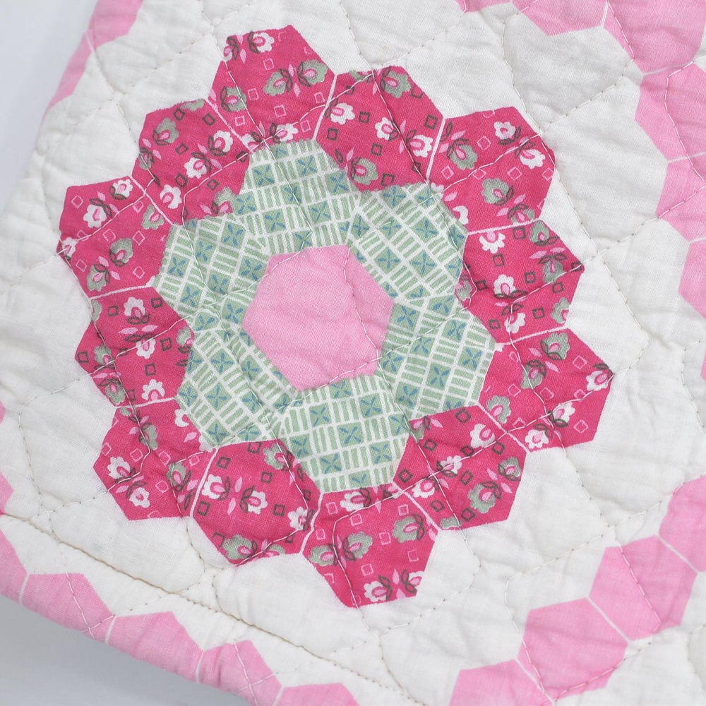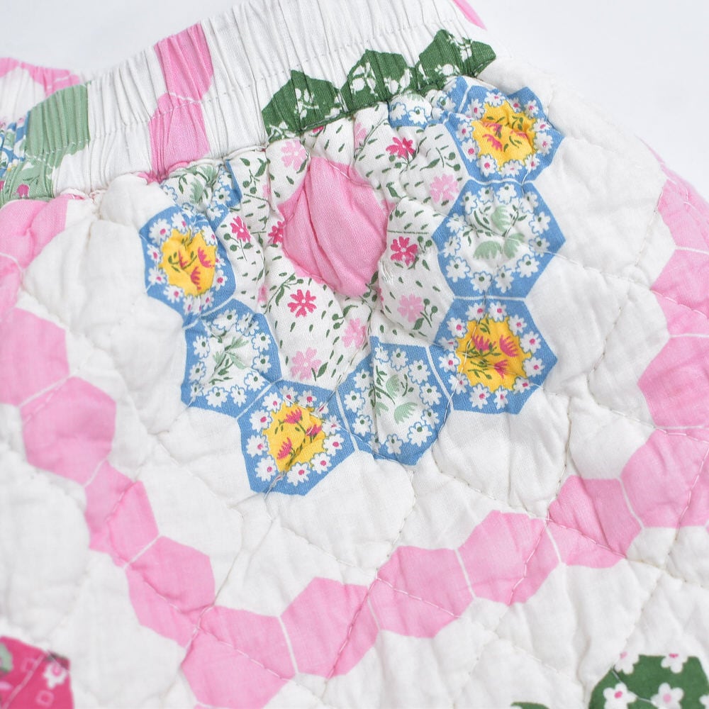 素敵なパッチワークキルトのデザインがプリントされた生地を再構築して作られたリメイクのショートパンツ