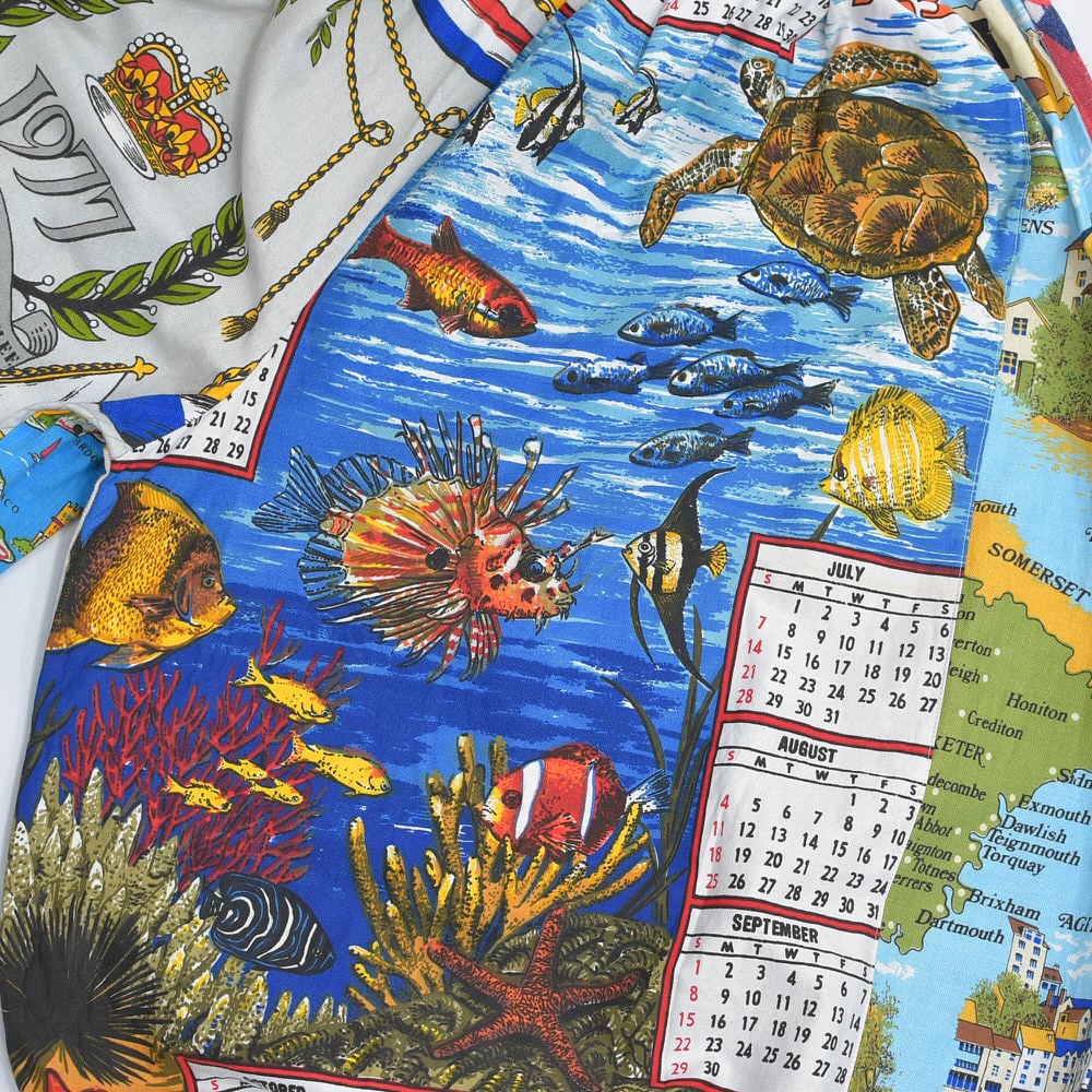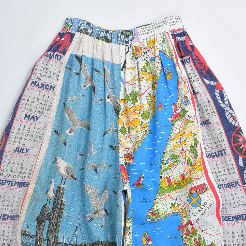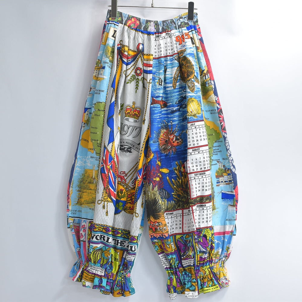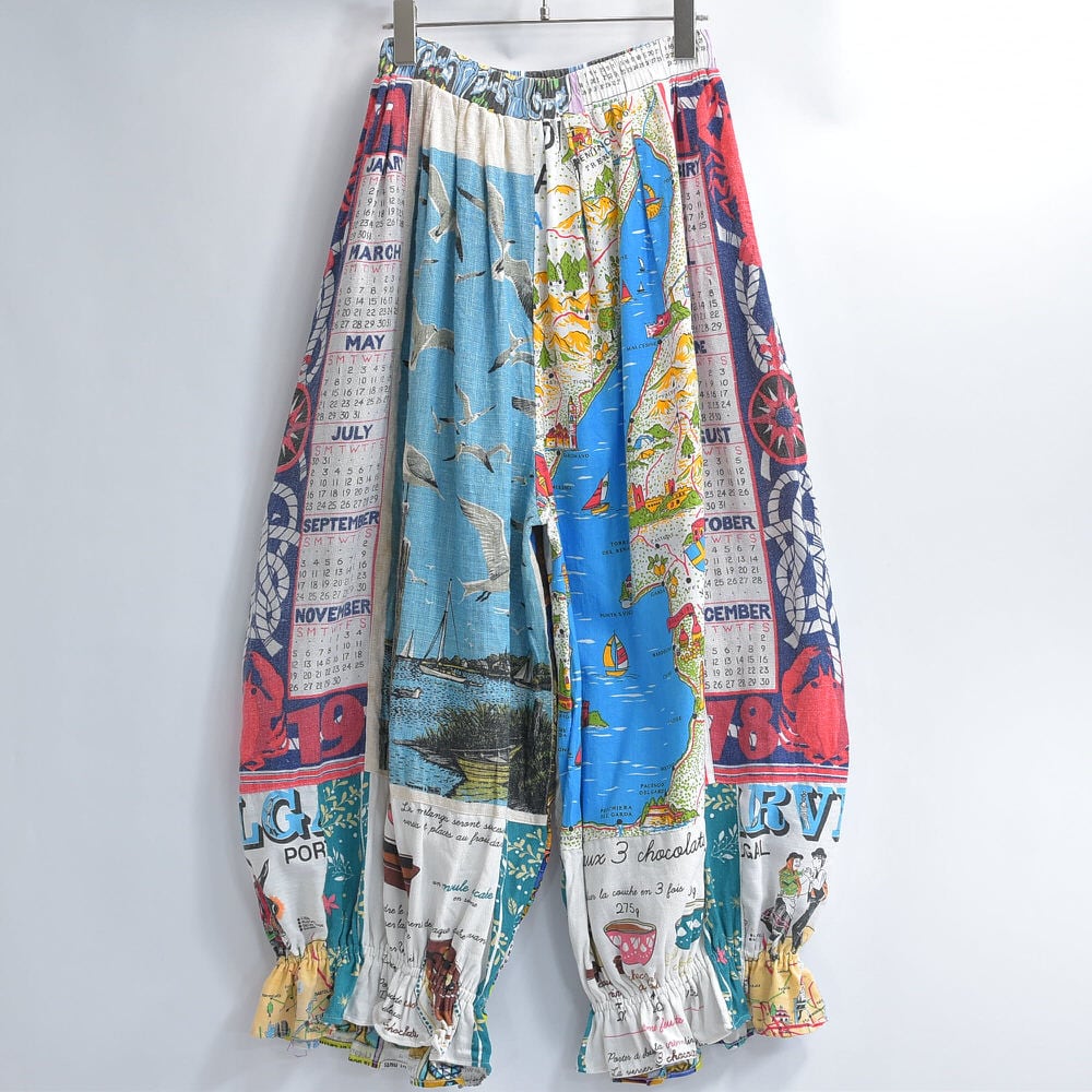 Remake テキスタイル パッチワーク デザイン ドロワーズ風 バルーンシルエット イージーパンツ 再構築 ティータオル カレンダー ツギハギ ユニセックスデザイン W61~106cm