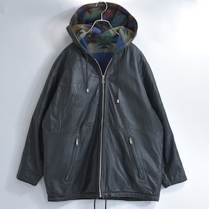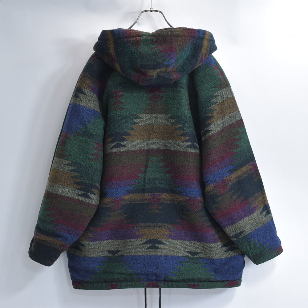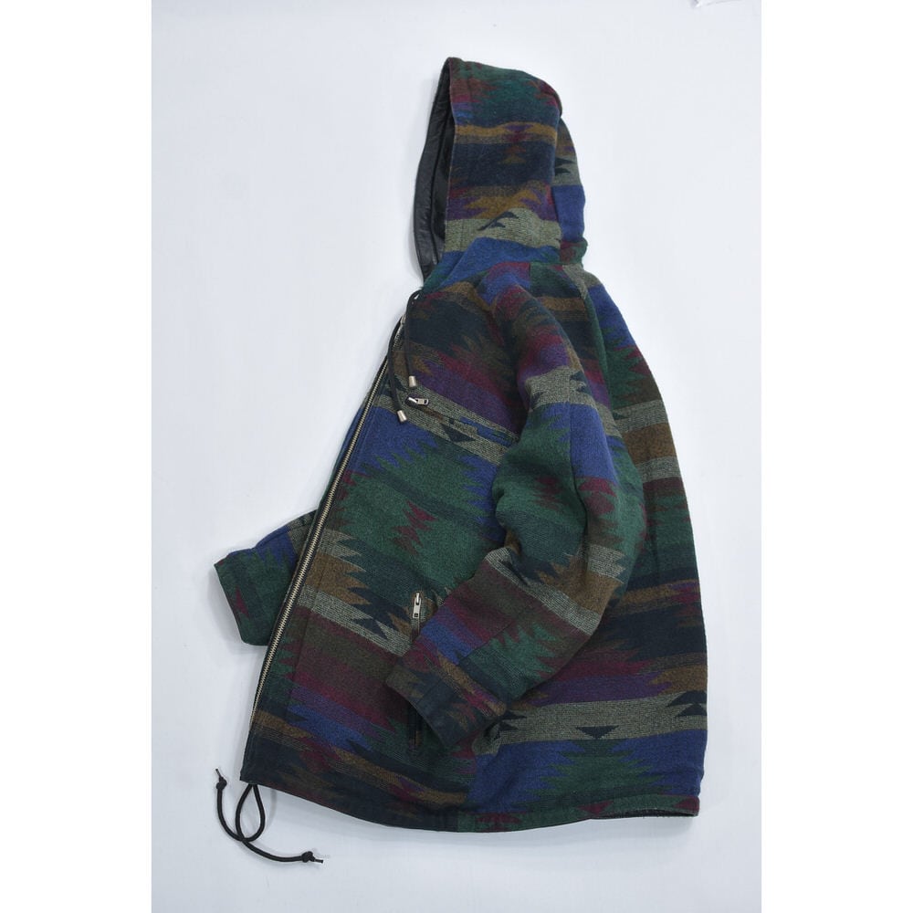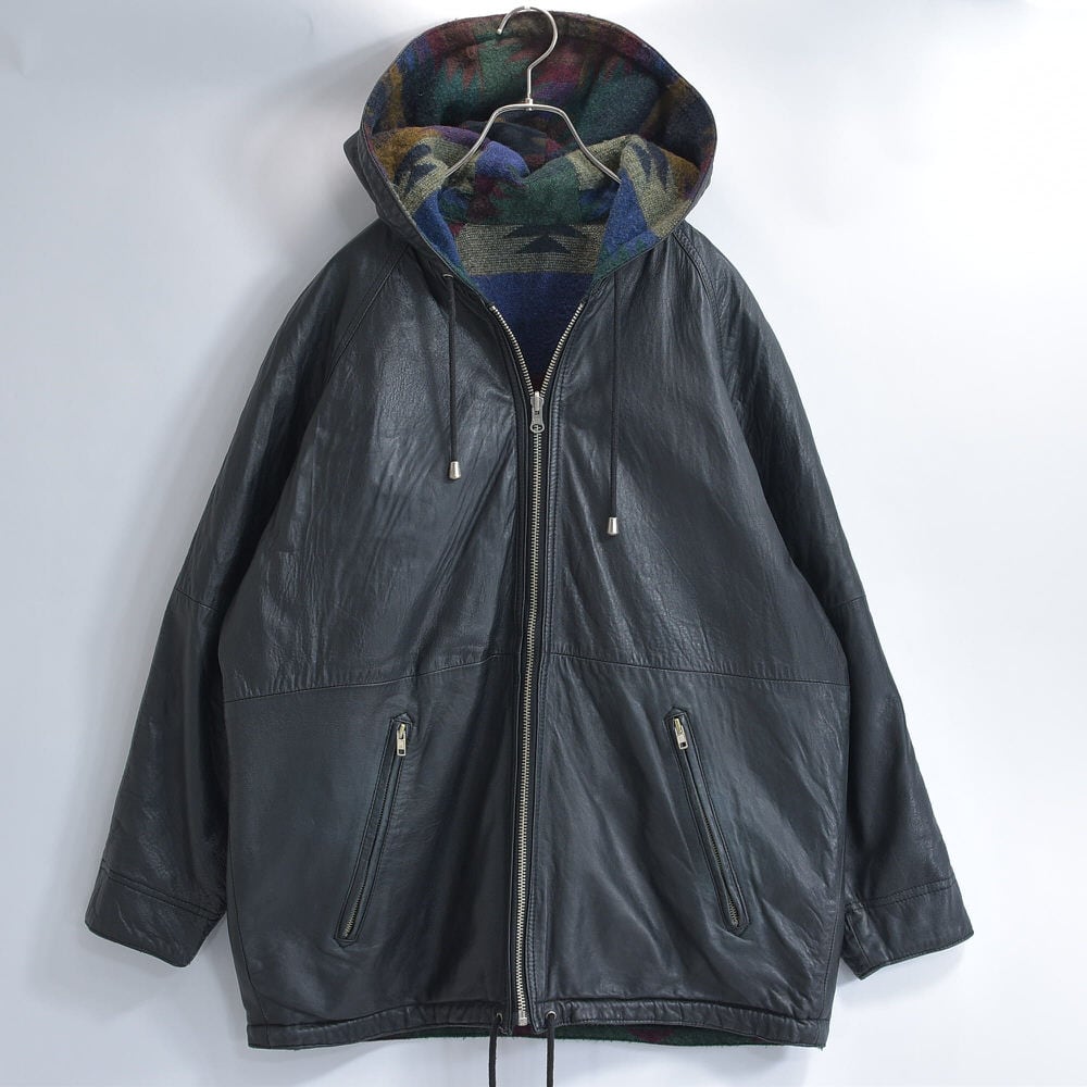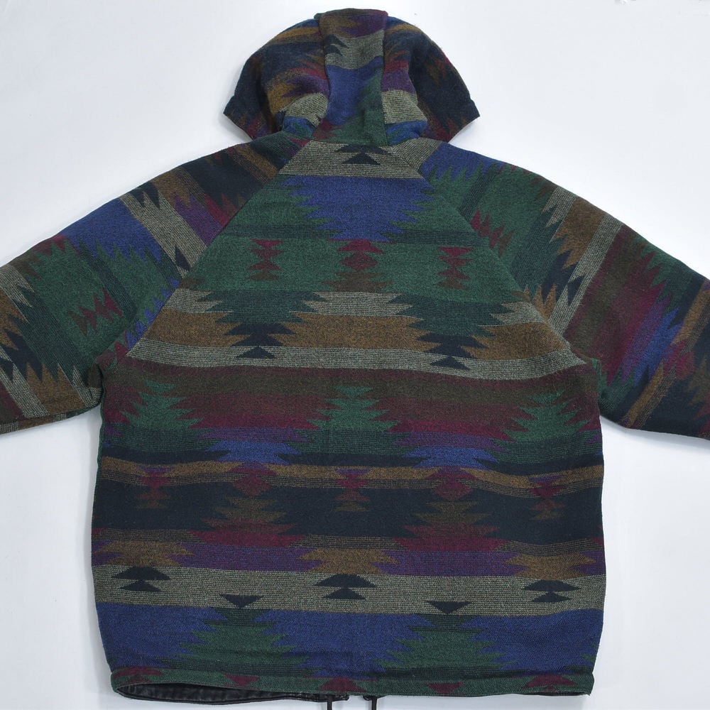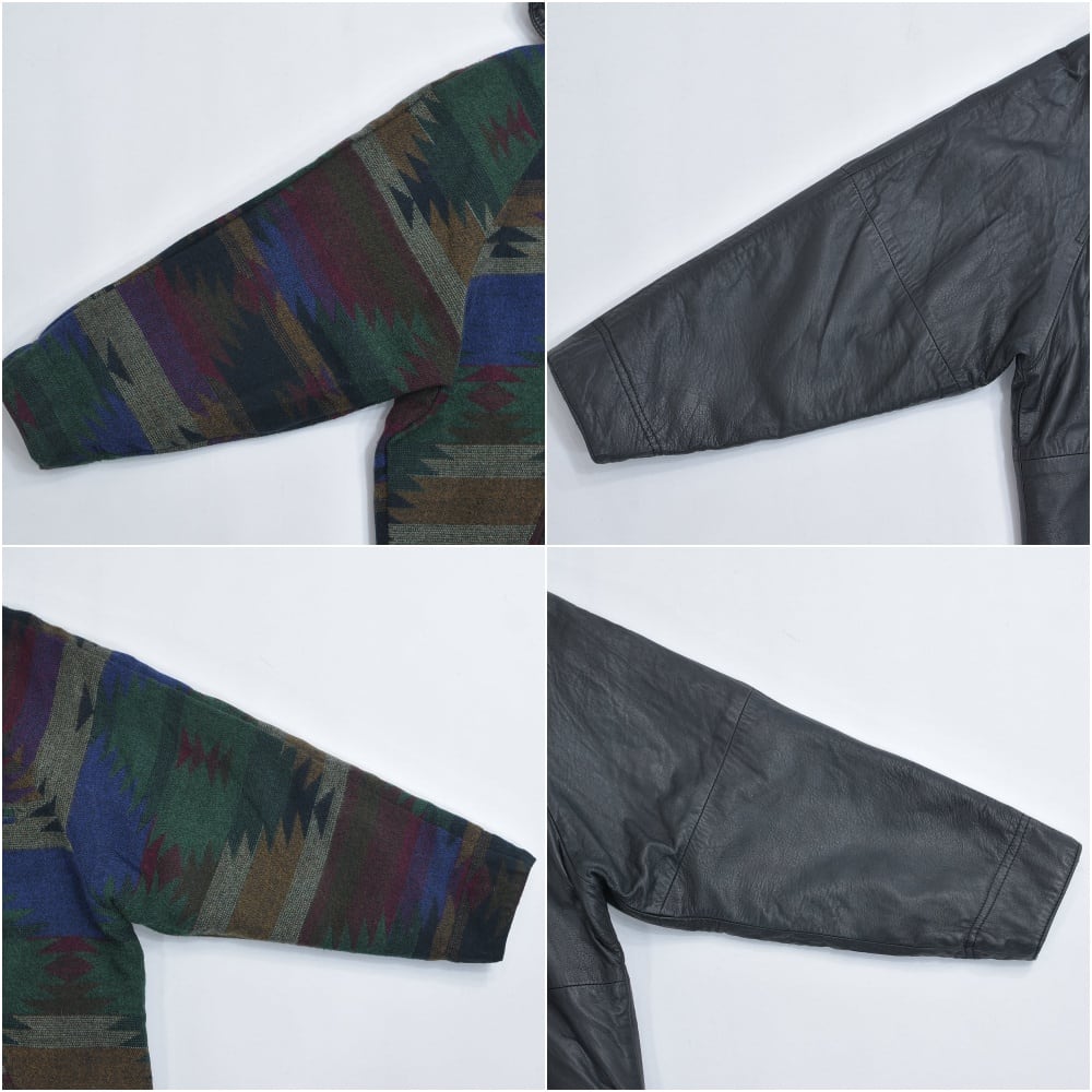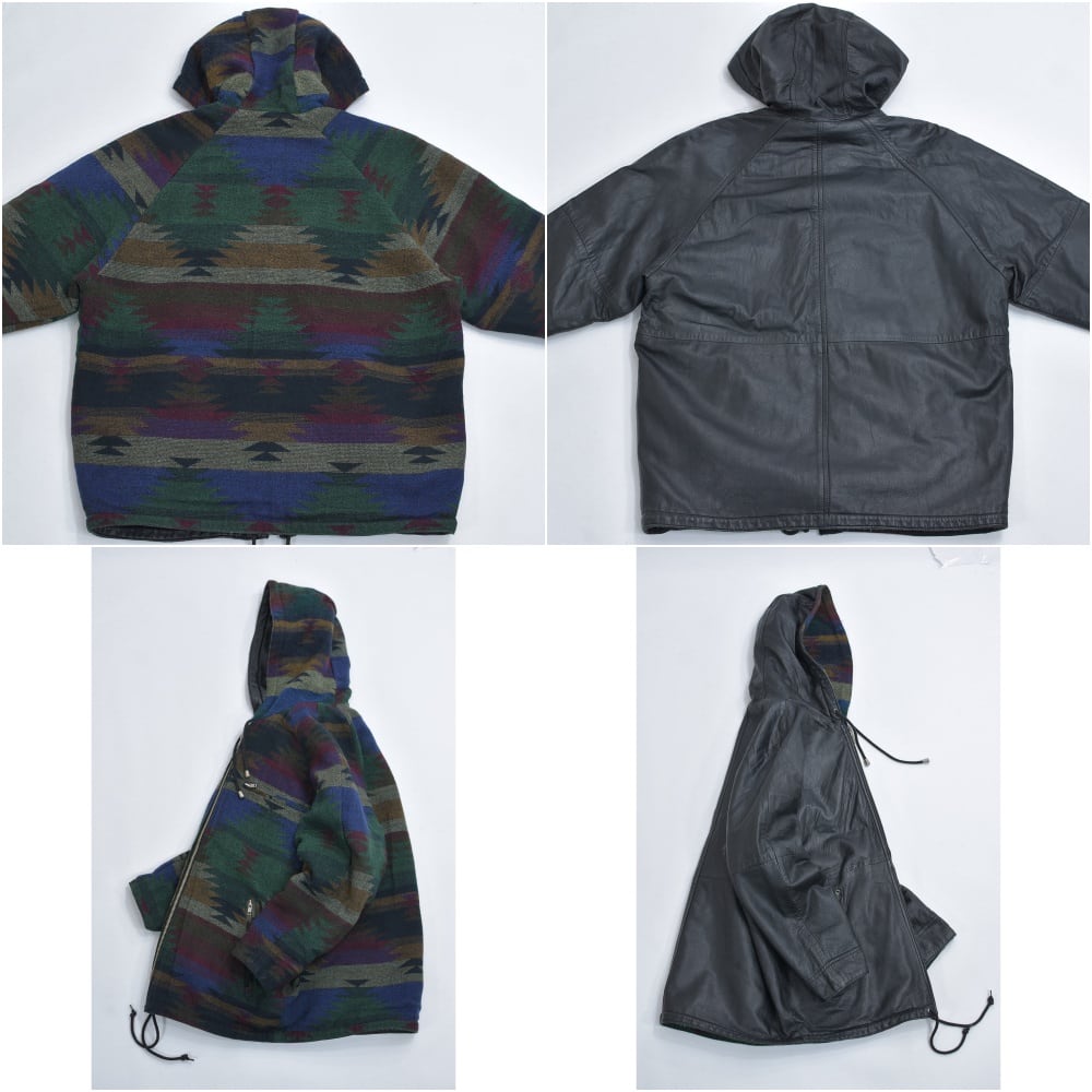 90s Reversible Jacket リバーシブル ネイティブ柄 ウール シープスキン レザー コンビネーション フーデッドジャケット ブルゾン ジャパンヴィンテージ ビンテージ 古着 メンズMサイズ