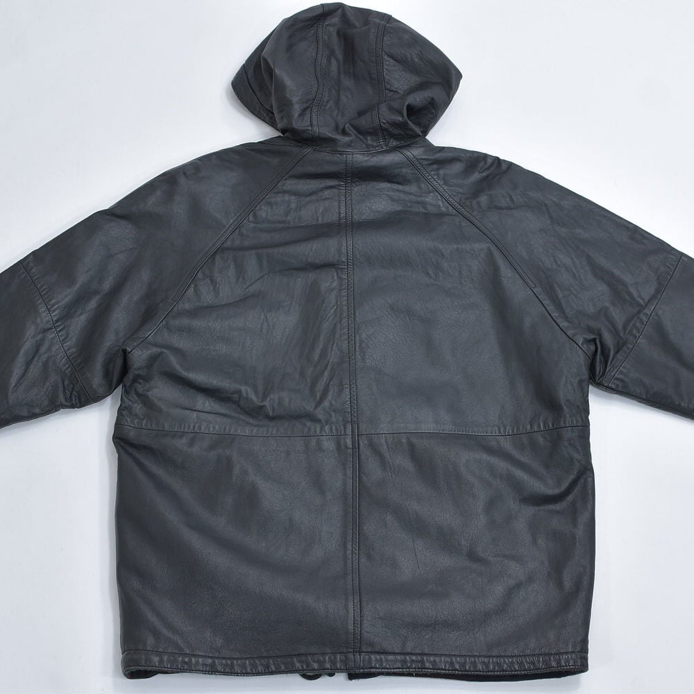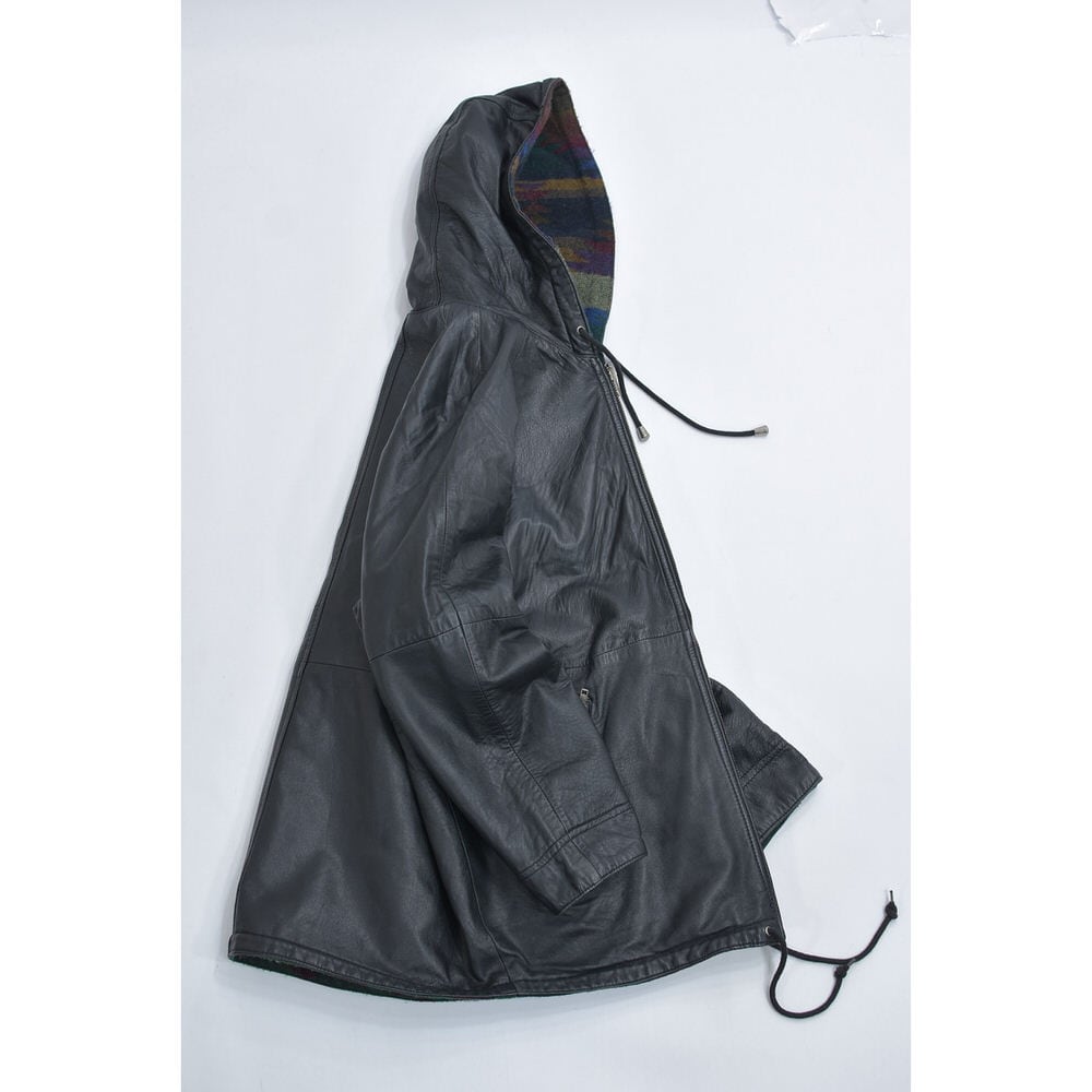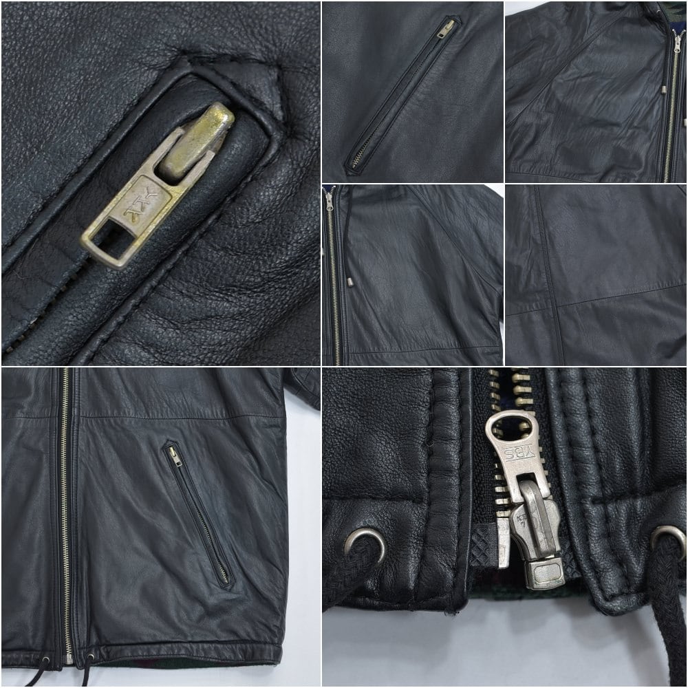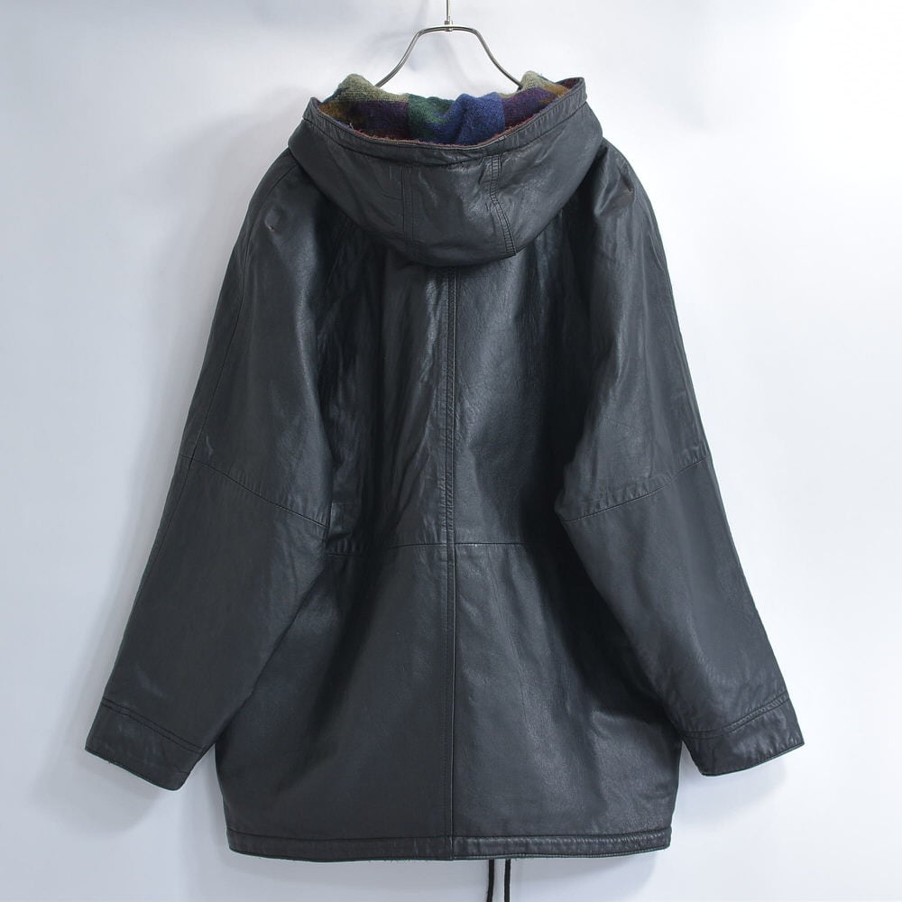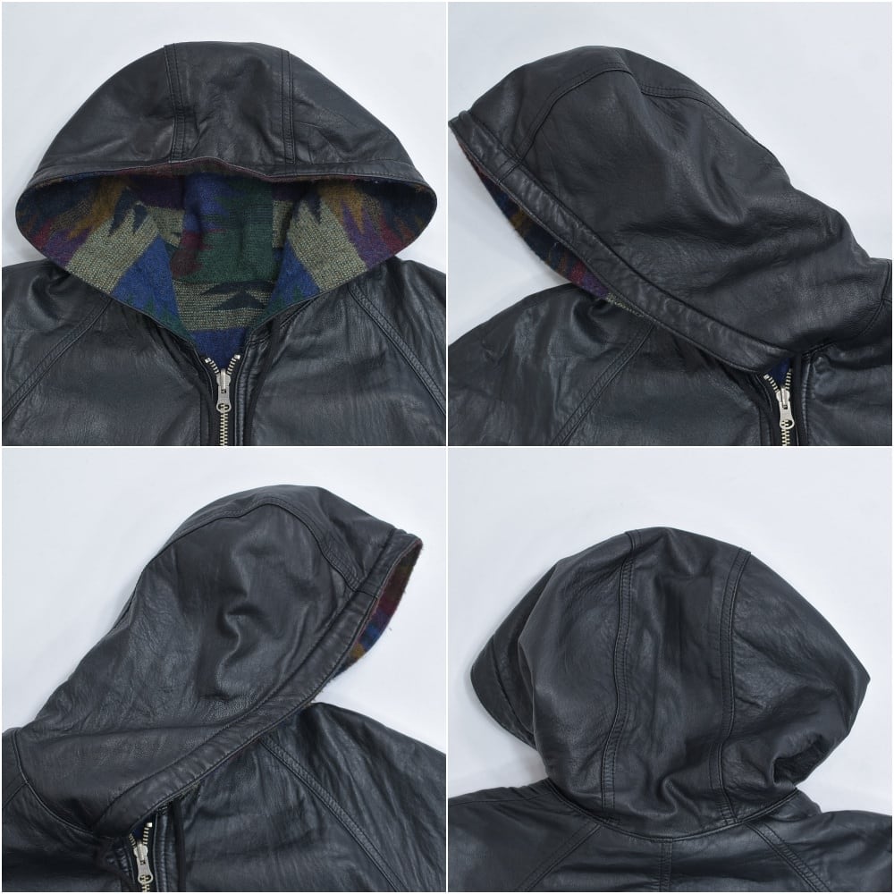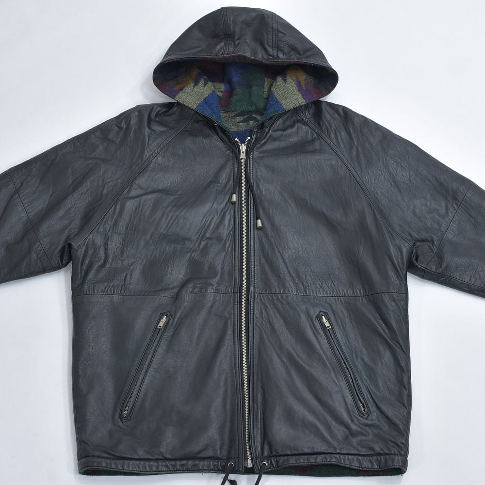 90s Reversible Jacket リバーシブル ネイティブ柄 ウール シープスキン レザー コンビネーション フーデッドジャケット ブルゾン ジャパンヴィンテージ ビンテージ 古着 メンズMサイズ