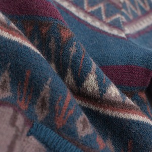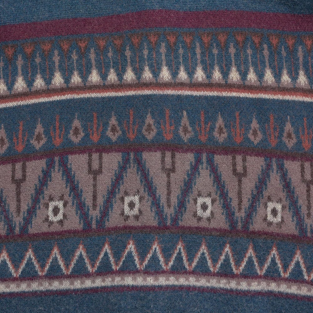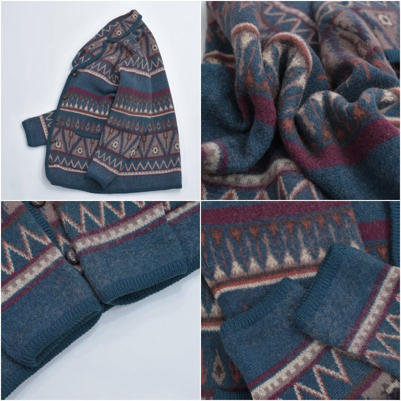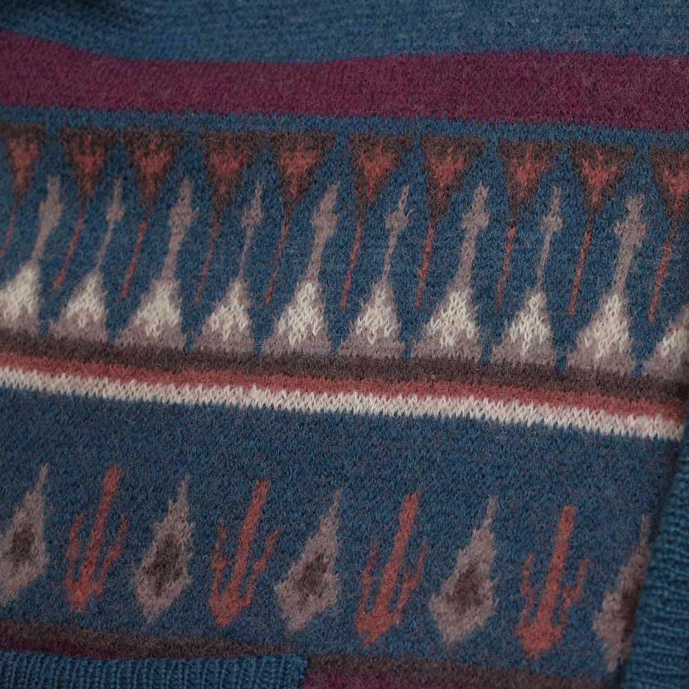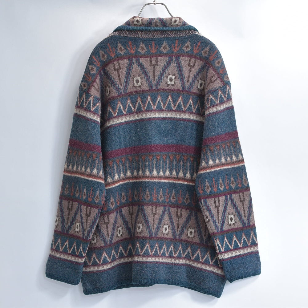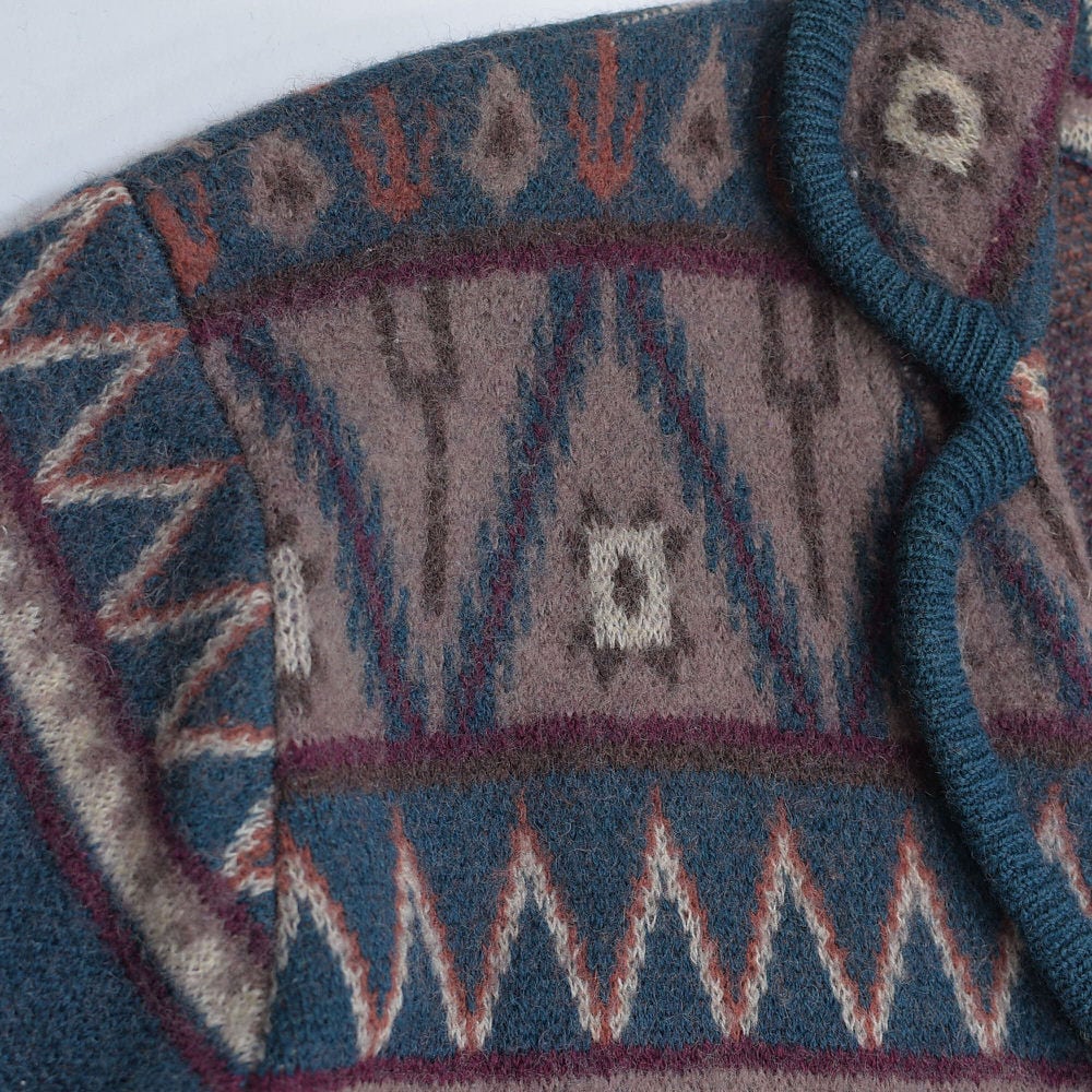 80〜90s Used ジャガード ネイティブ柄 変形ショールカラー デザイン ニットジャケット カーディガン 総柄 ヴィンテージ ビンテージ 古着 メンズL相当