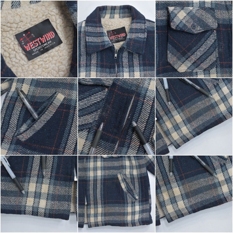 70~80s USA製 WESTWIND ウエストウィンド ボアライナー ウールブレンド チェック ジャケット ヴィンテージ ビンテージ アメリカ古着 メンズM~L相当