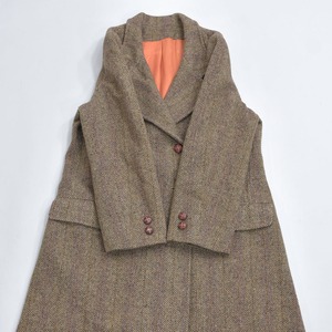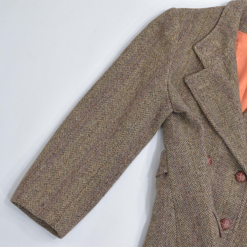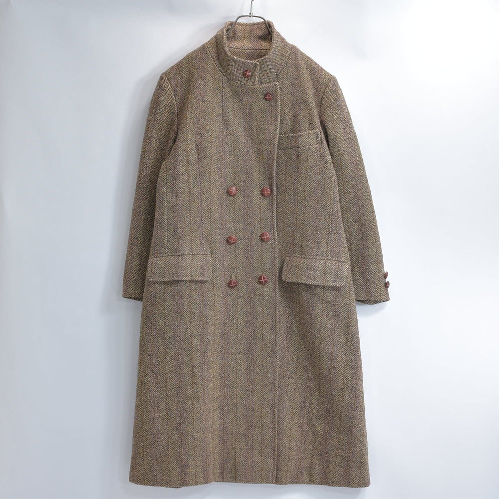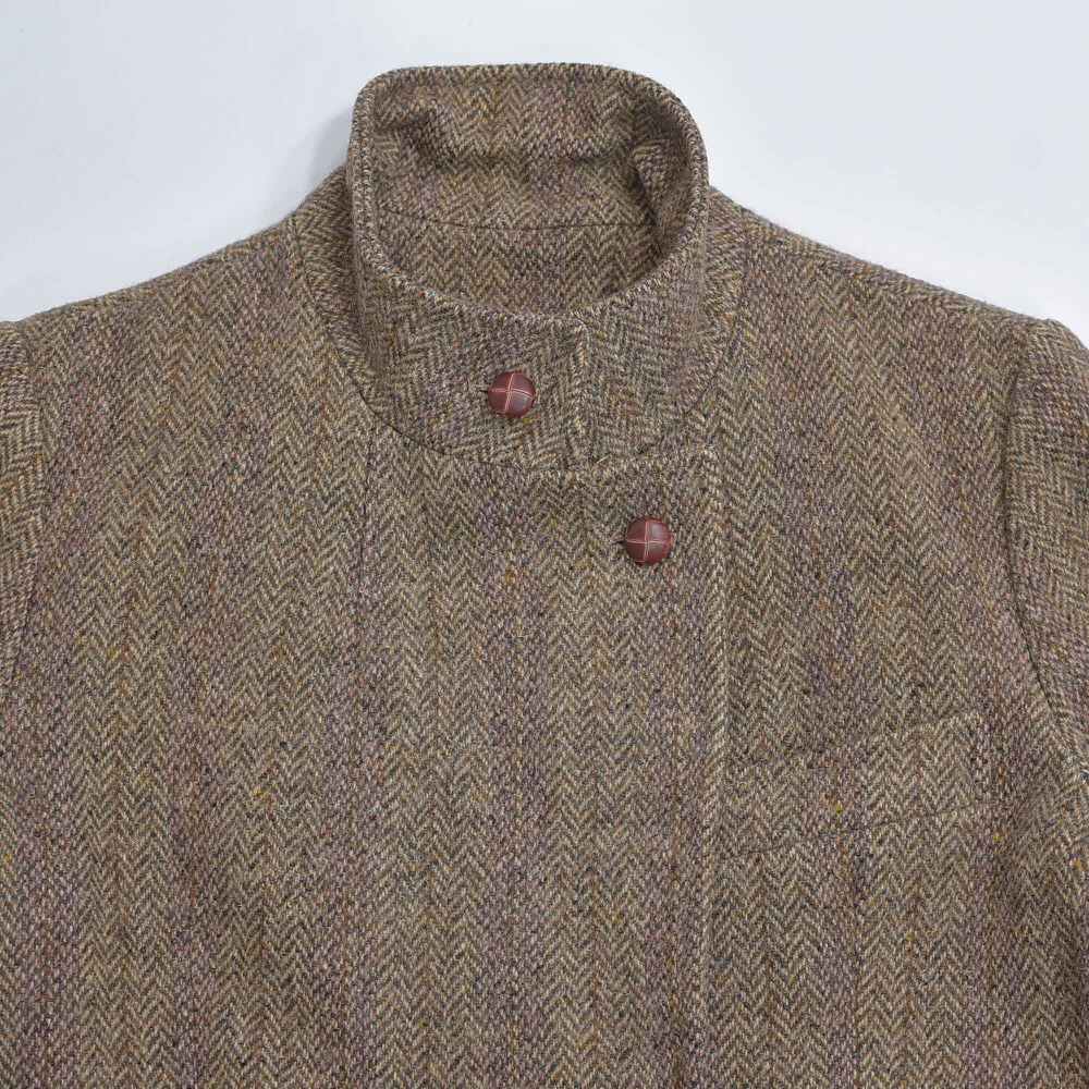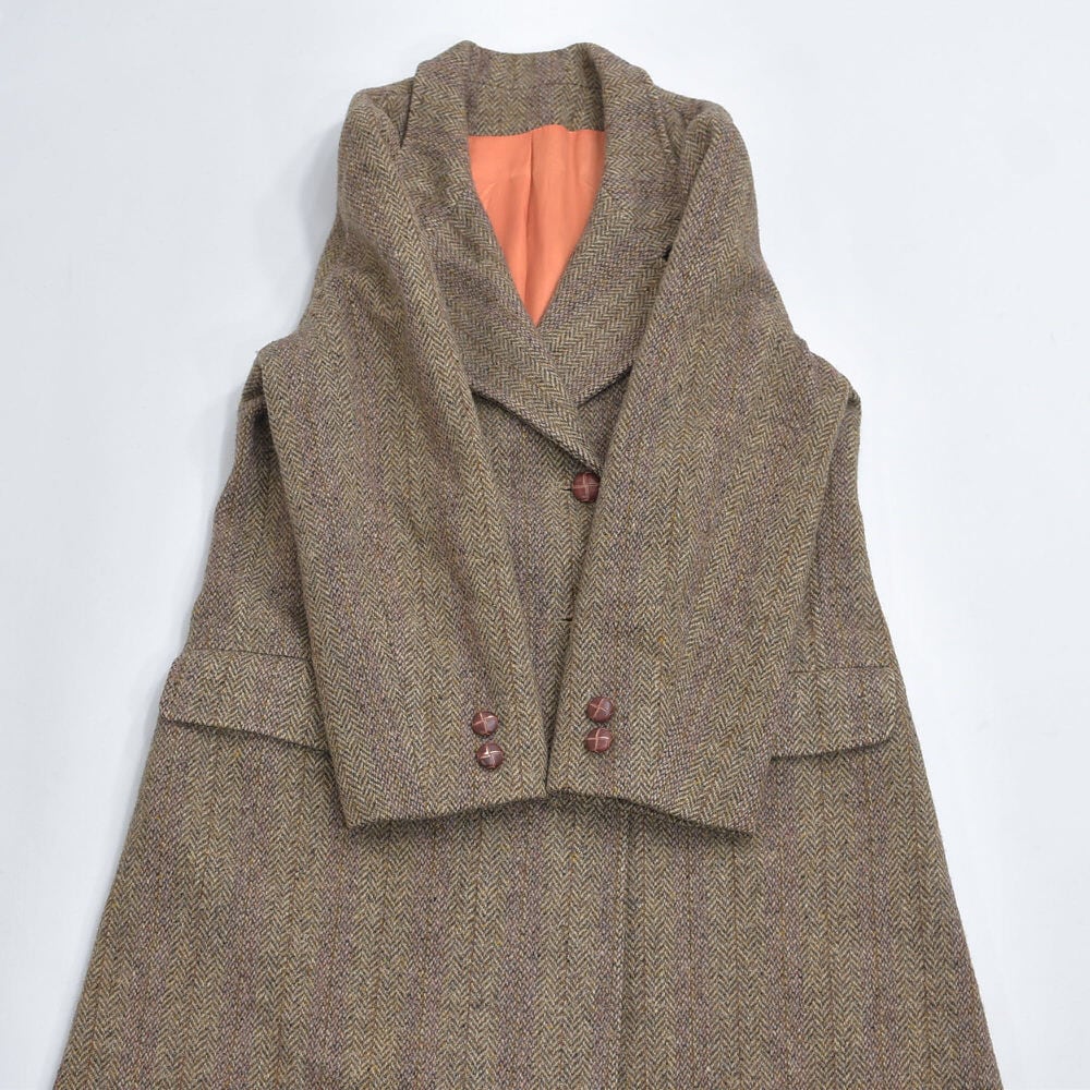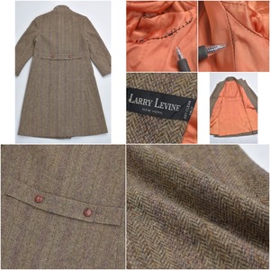 70〜80s USA製 LARRY LEVINE ラリーレヴァイン ヘリンボーンツイード 2way ウールロングコート ヴィンテージ ビンテージ アメリカ古着 レディースM相当