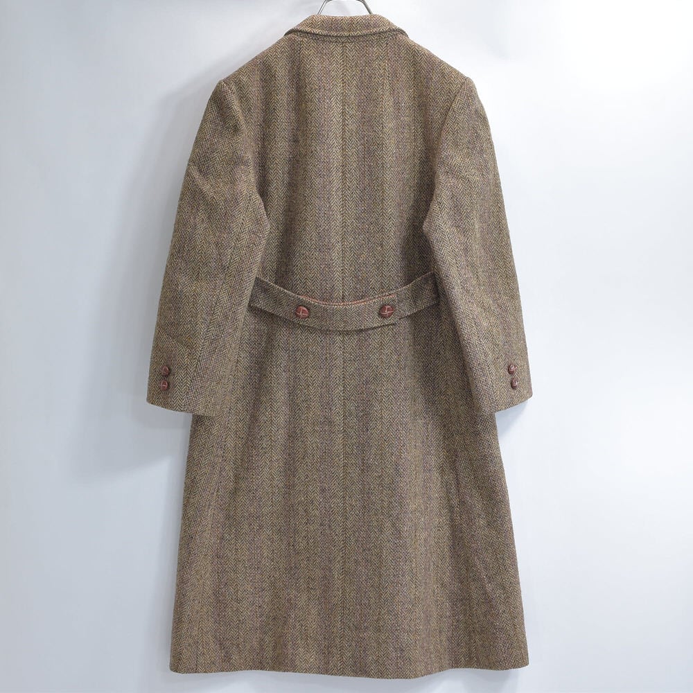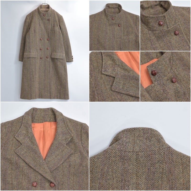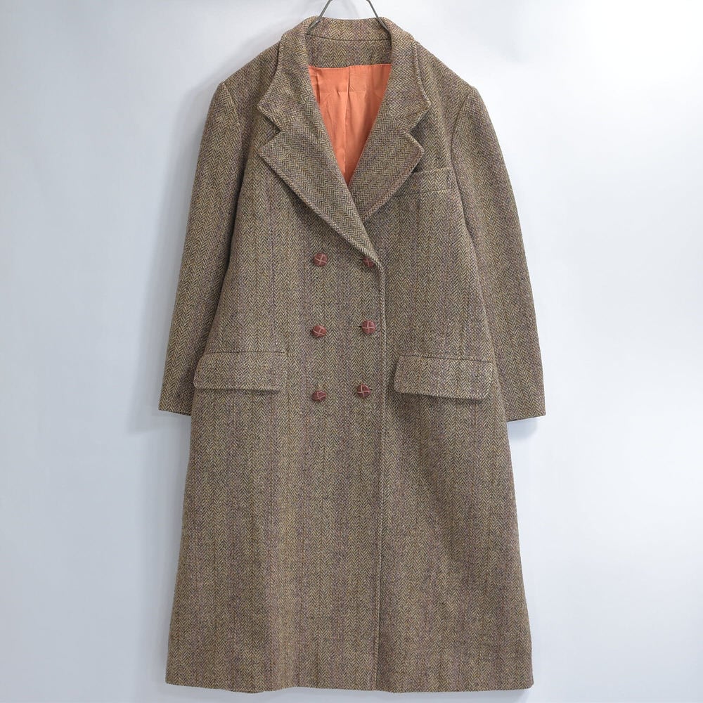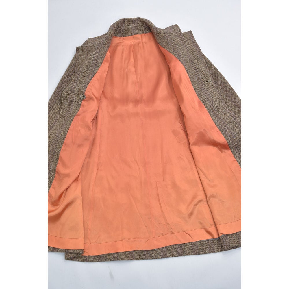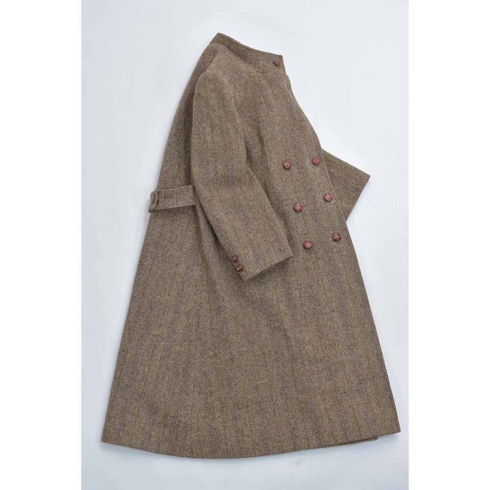 70〜80s USA製 LARRY LEVINE ラリーレヴァイン ヘリンボーンツイード 2way ウールロングコート ヴィンテージ ビンテージ アメリカ古着 レディースM相当