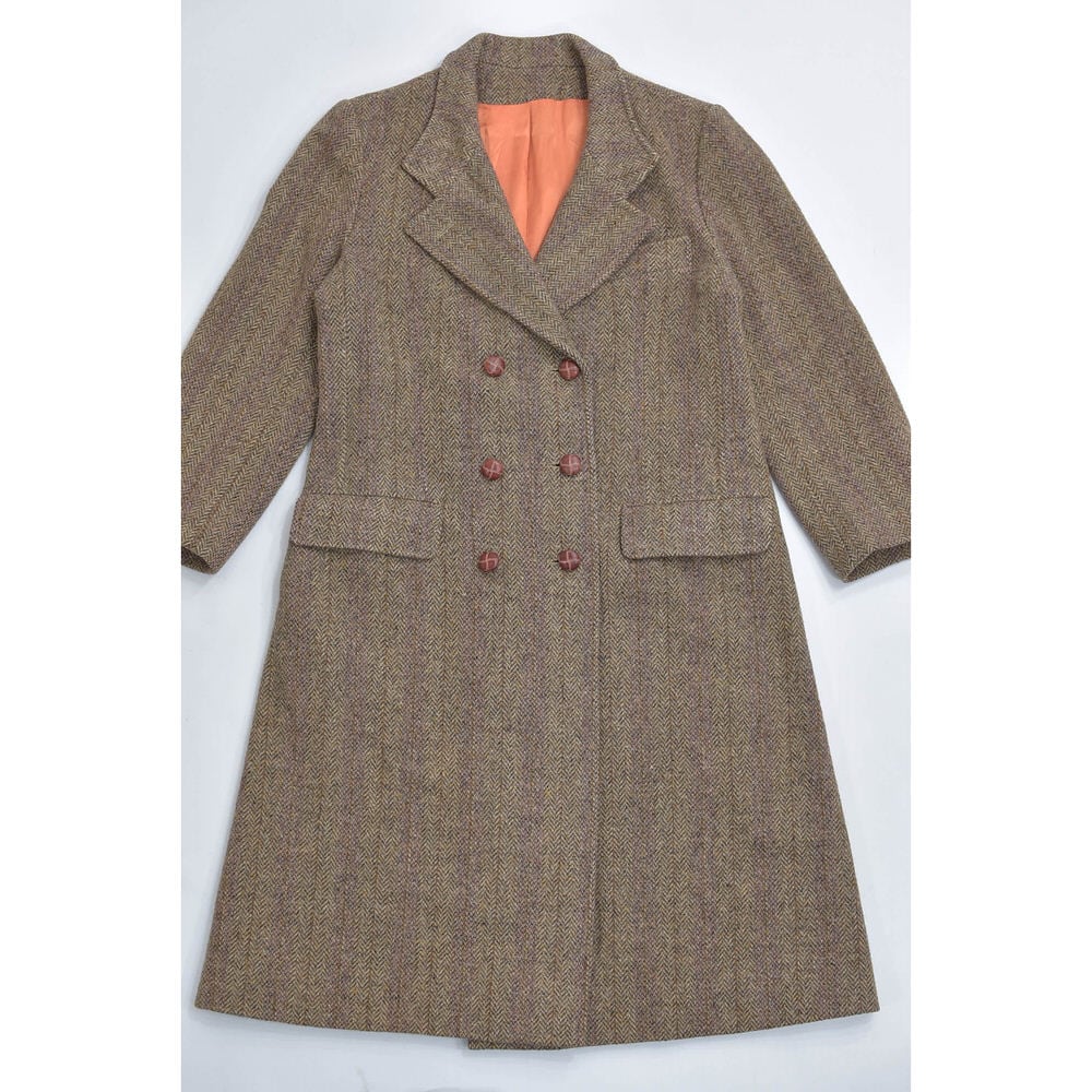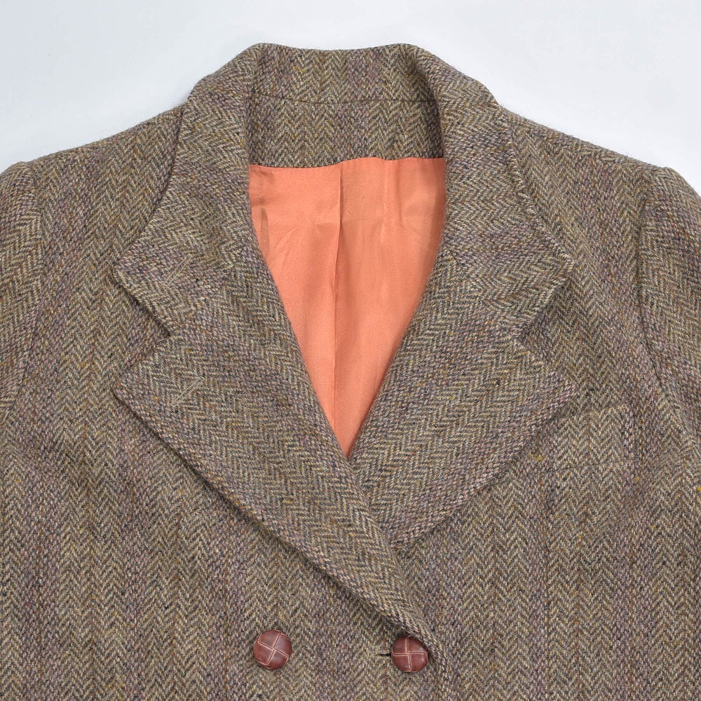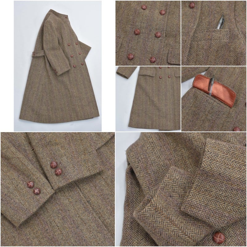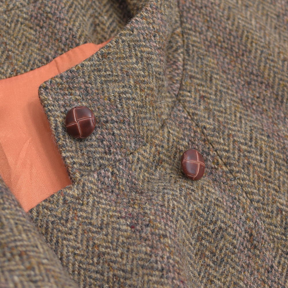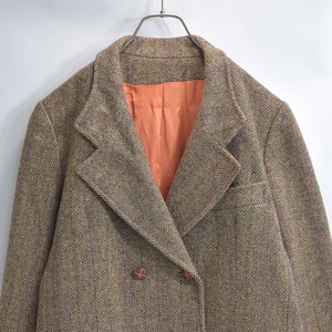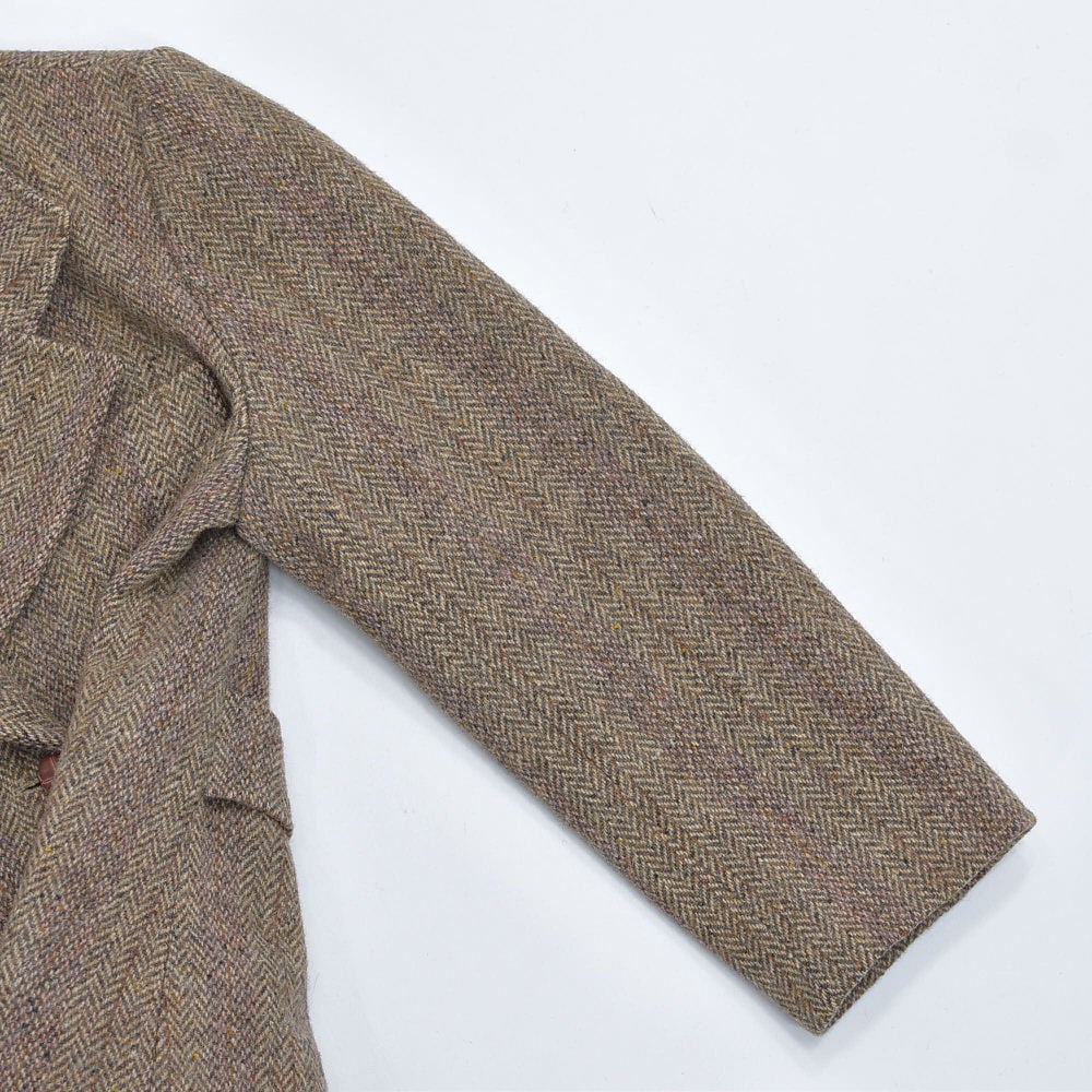 70〜80s USA製 LARRY LEVINE ラリーレヴァイン ヘリンボーンツイード 2way ウールロングコート ヴィンテージ ビンテージ アメリカ古着 レディースM相当