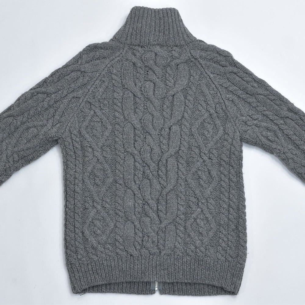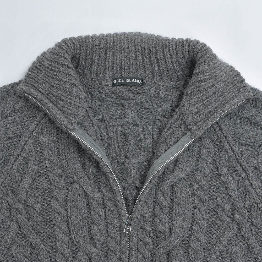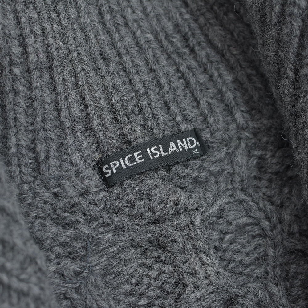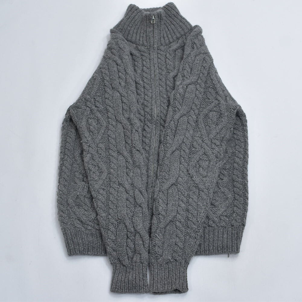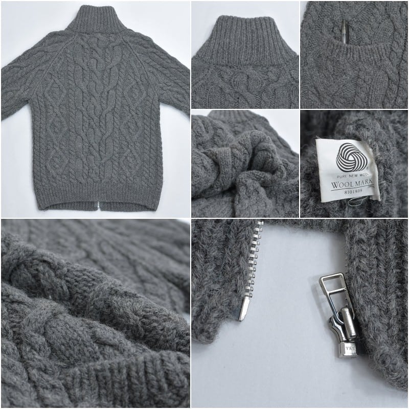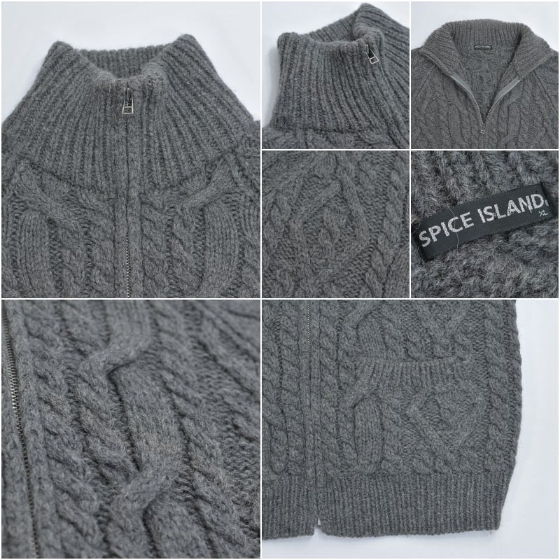 90〜00s SPICE ISLAND スパイスアイランド ケーブル編み アランニット デザイン フルジップ カーディガン ジャケット グレー ヴィンテージ ビンテージ 古着 メンズXLサイズ