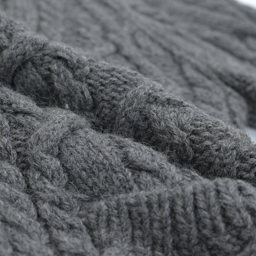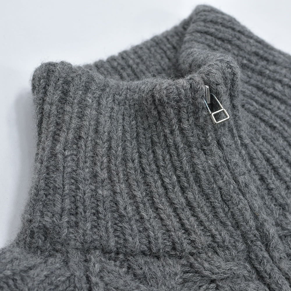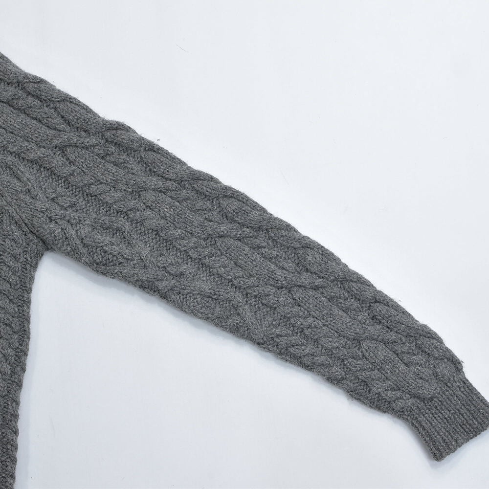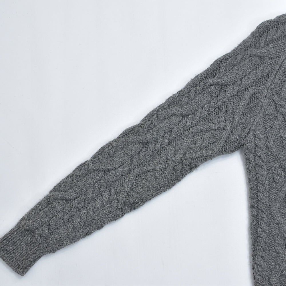 このカーディガンの面白いところは、伝統的なアラン編みでありながら、フルジップというアクティブな顔を持っていること