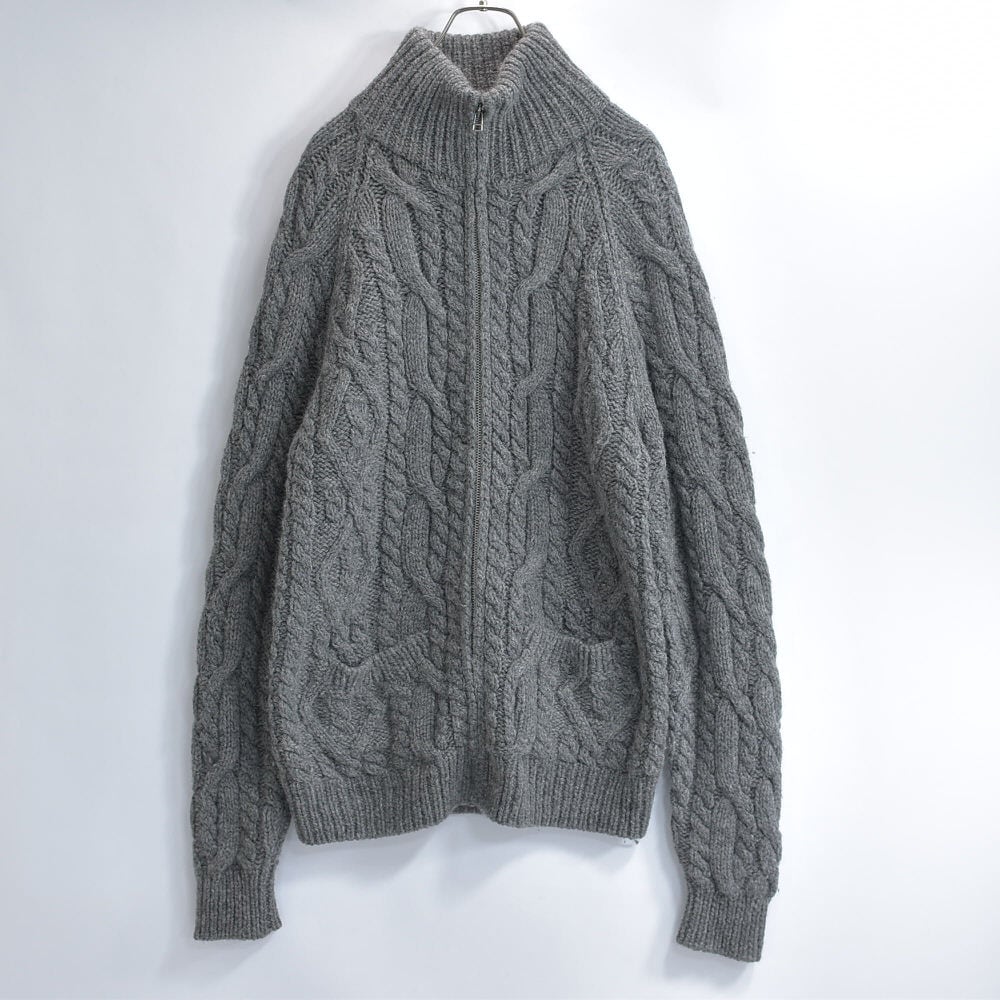 90~00s SPICE ISLAND スパイスアイランド ケーブル編み アランニット デザイン フルジップ カーディガン ジャケット グレー ヴィンテージ ビンテージ 古着 メンズXLサイズ