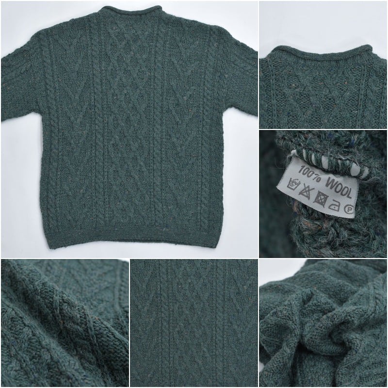 80〜90s Brambles ブランブルズ ロールネック デザイン アラン編み フィッシャーマン ネップ ウール プルオーバーニット セーター ヴィンテージ ビンテージ 古着 メンズL相当
