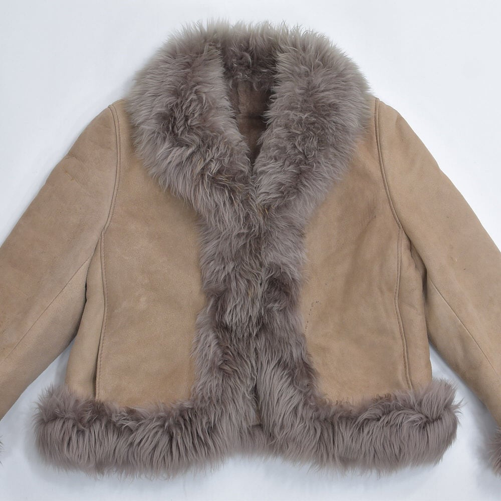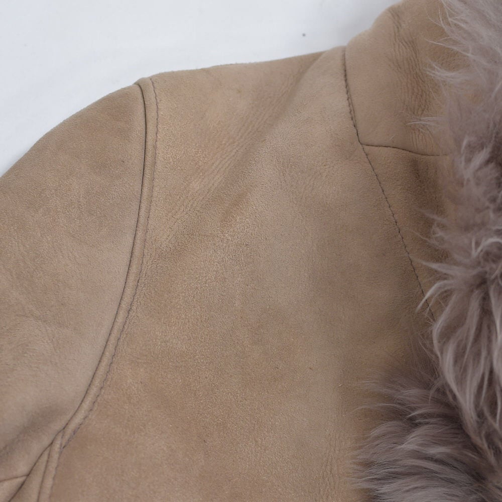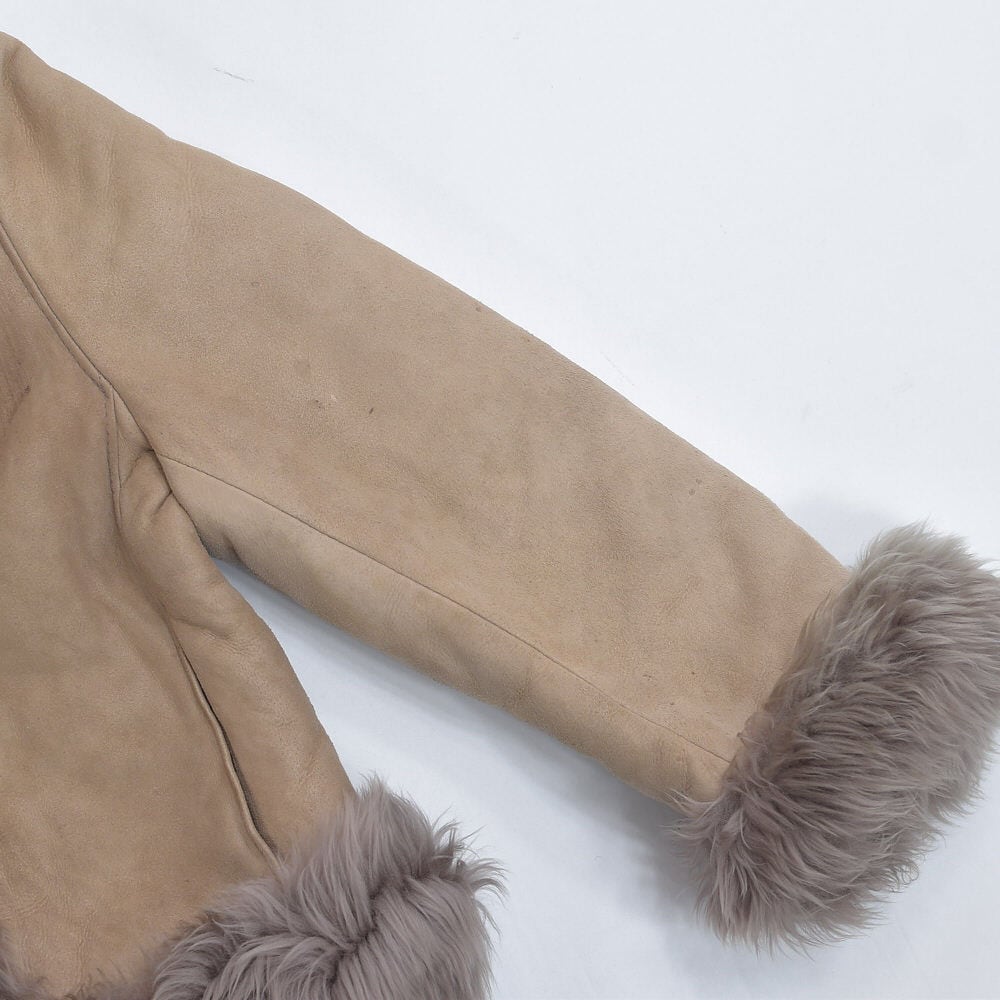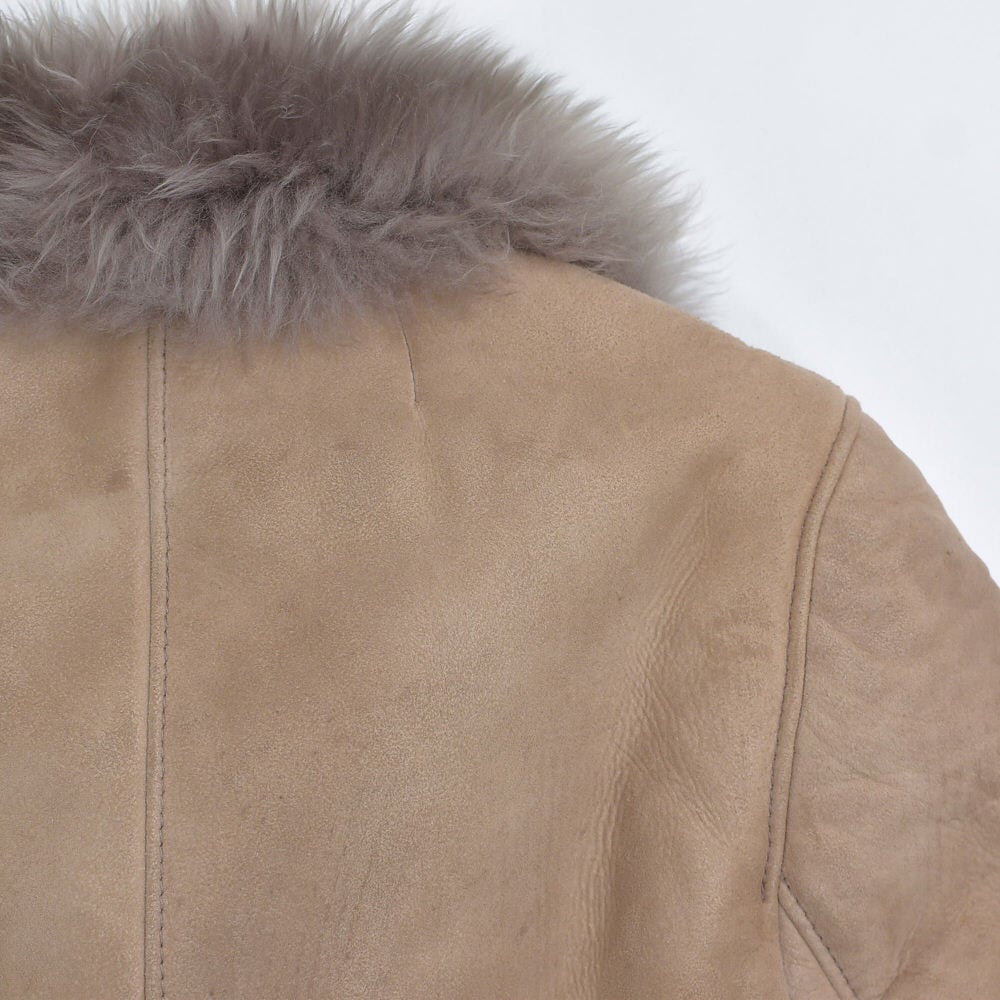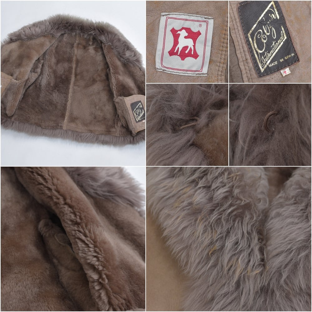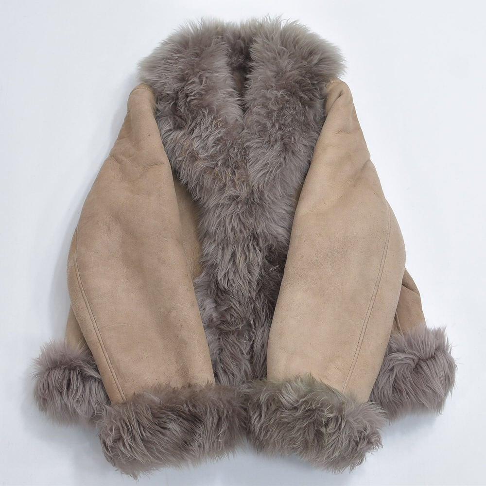 80~90s スペイン製 Colzy International コルジー リアルムートン ファー ショールカラー ショートジャケット シアリングジャケット ブルゾン ヴィンテージ ビンテージ ヨーロッパ古着 グレージュ レディースM相当