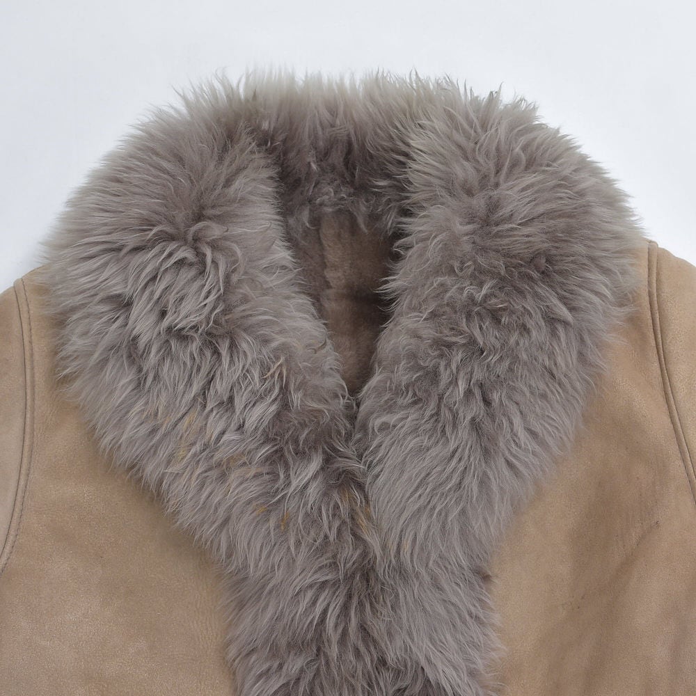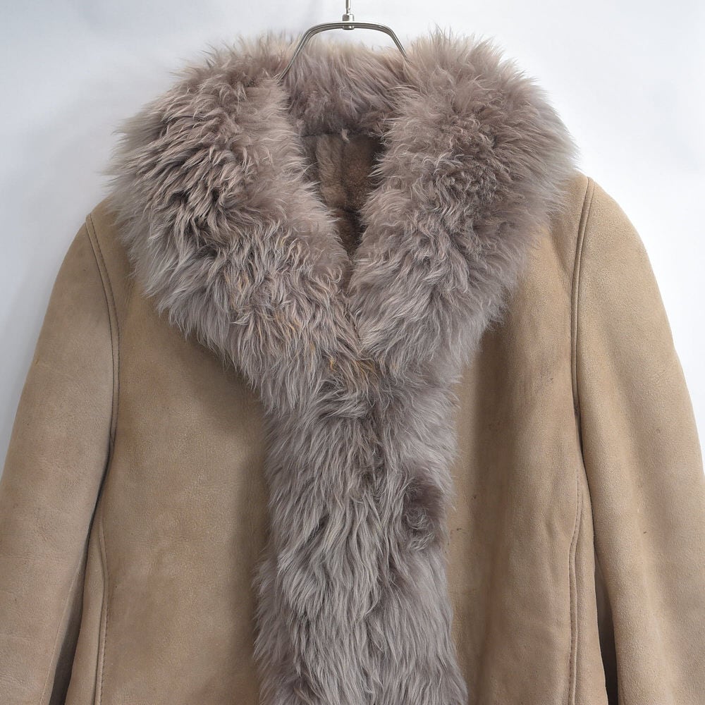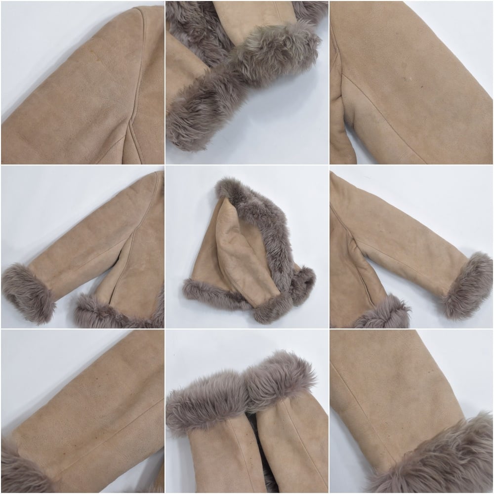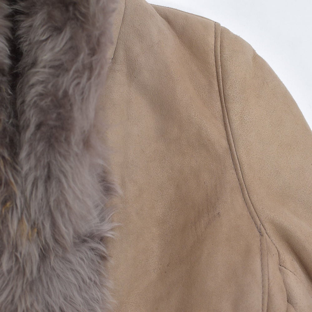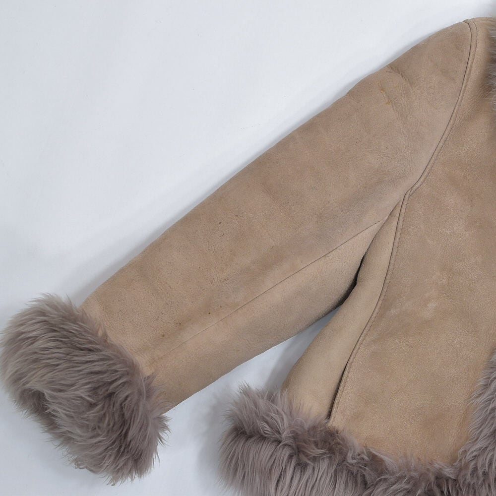 80~90s スペイン製 Colzy International コルジー リアルムートン ファー ショールカラー ショートジャケット シアリングジャケット ブルゾン ヴィンテージ ビンテージ ヨーロッパ古着 グレージュ レディースM相当