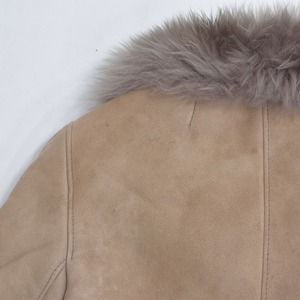 ・使用感や色褪せ、画像の様に袖や身頃に薄汚れや小さなキズなどが全体的にあります。大きく目立つ汚れや、ダメージは見当たらず、古着のレザーやムートンにご理解がある方であれば、問題無く着用して頂けると思います